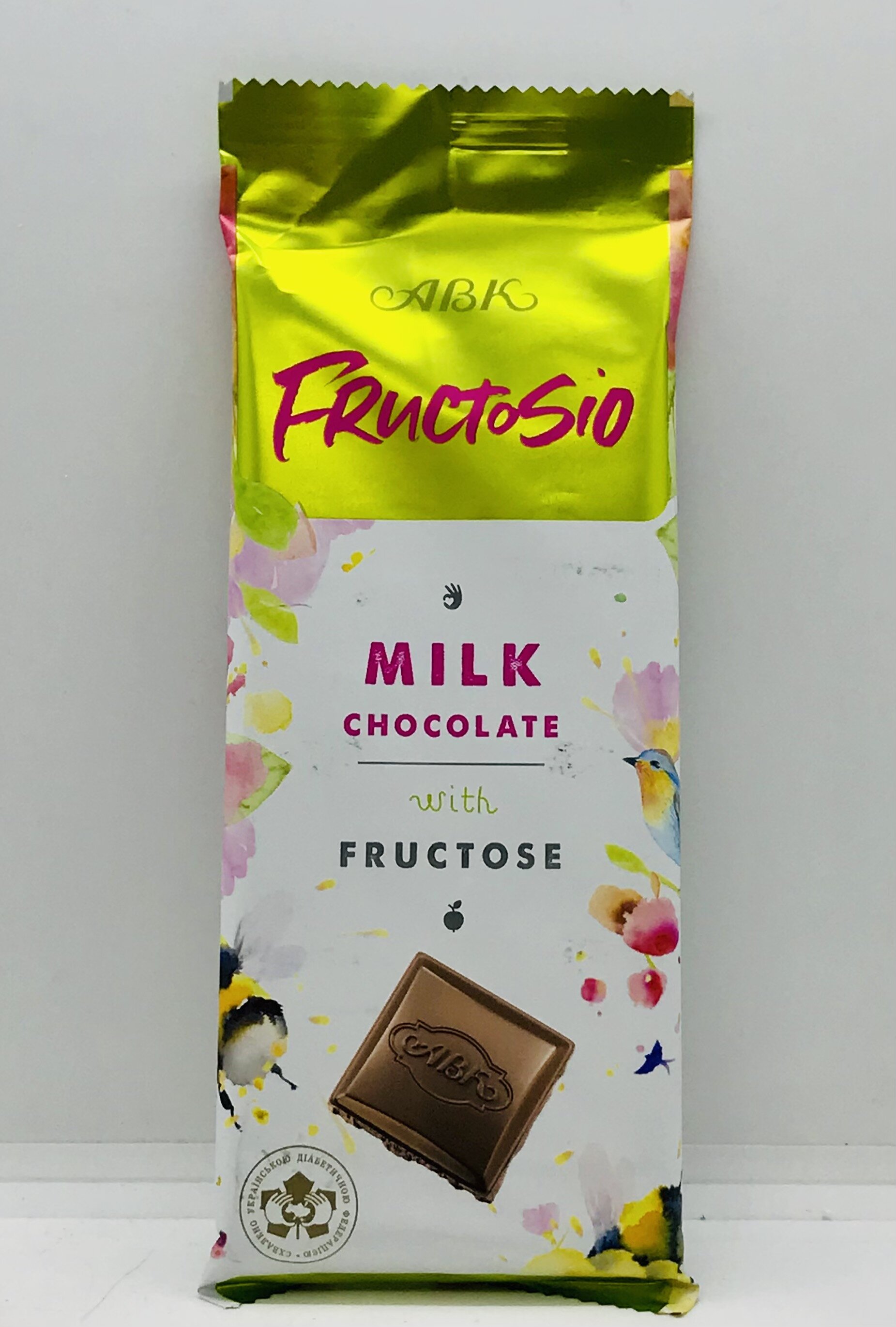 Fructose 34.5 %, cocoa butter, cocoa mass, whole milk powder 9.9 %, skimmed-milk powder 8.8 %, roasted grated cashews 3.9 %, milk fat, emulsifier soy lecithin, flavouring vanillin. Nutritional value per 100 g of product: energy value 2397 kJ (573 kcal); fat - 42.7 g, of which saturates - 23.3 g; carbohydrate - 43.7 g, of which sugars-5.6 g; protein - 8.5 g; salt - 0.20 g. Cocoa solids: 41.4% minimum.