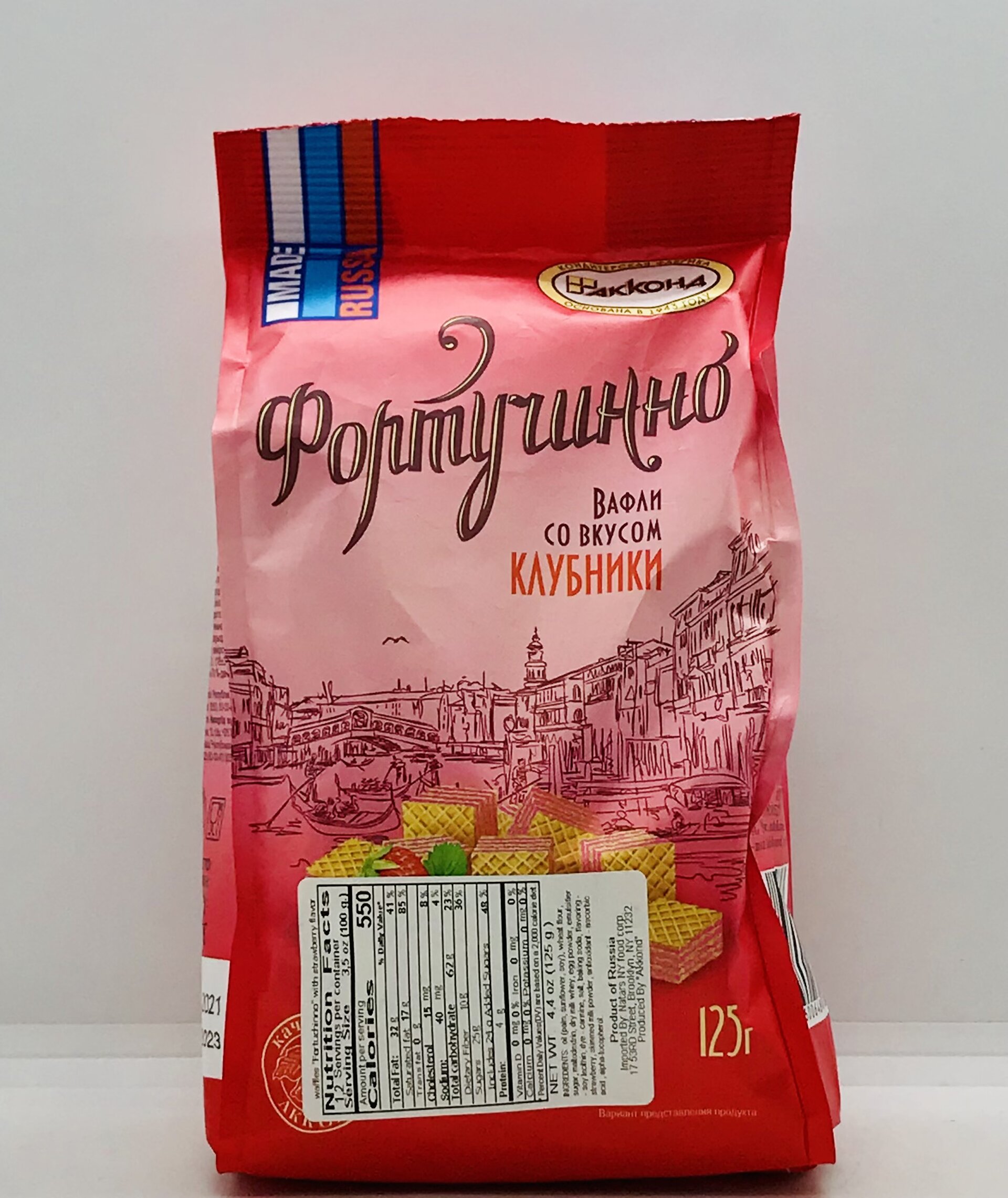 Oil (palm, sunflower, soy), wheat flour, sugar, maltodextrin, dry milk whey, egg powder, emulsifier - soy lecithin, dye - carmine, salt, baking soda, flavoring - strawberry, skimmed milk powder, antioxidant - ascorbic acid, alpha-tocopherol.
