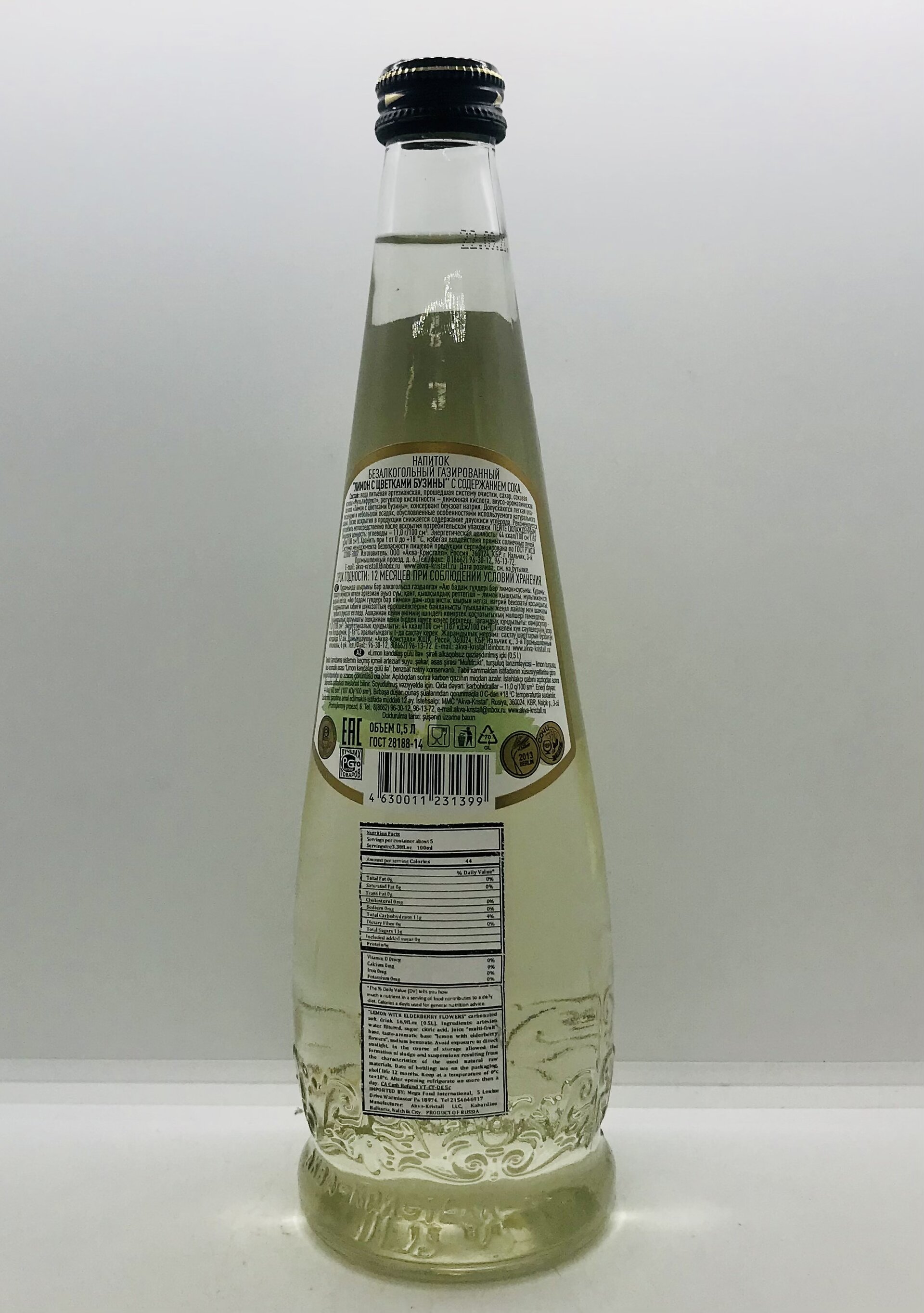 Artesian water filtered, sugar, citric acid, juice multifruit base, taste-aromatic base lemon with elderberry flowers.