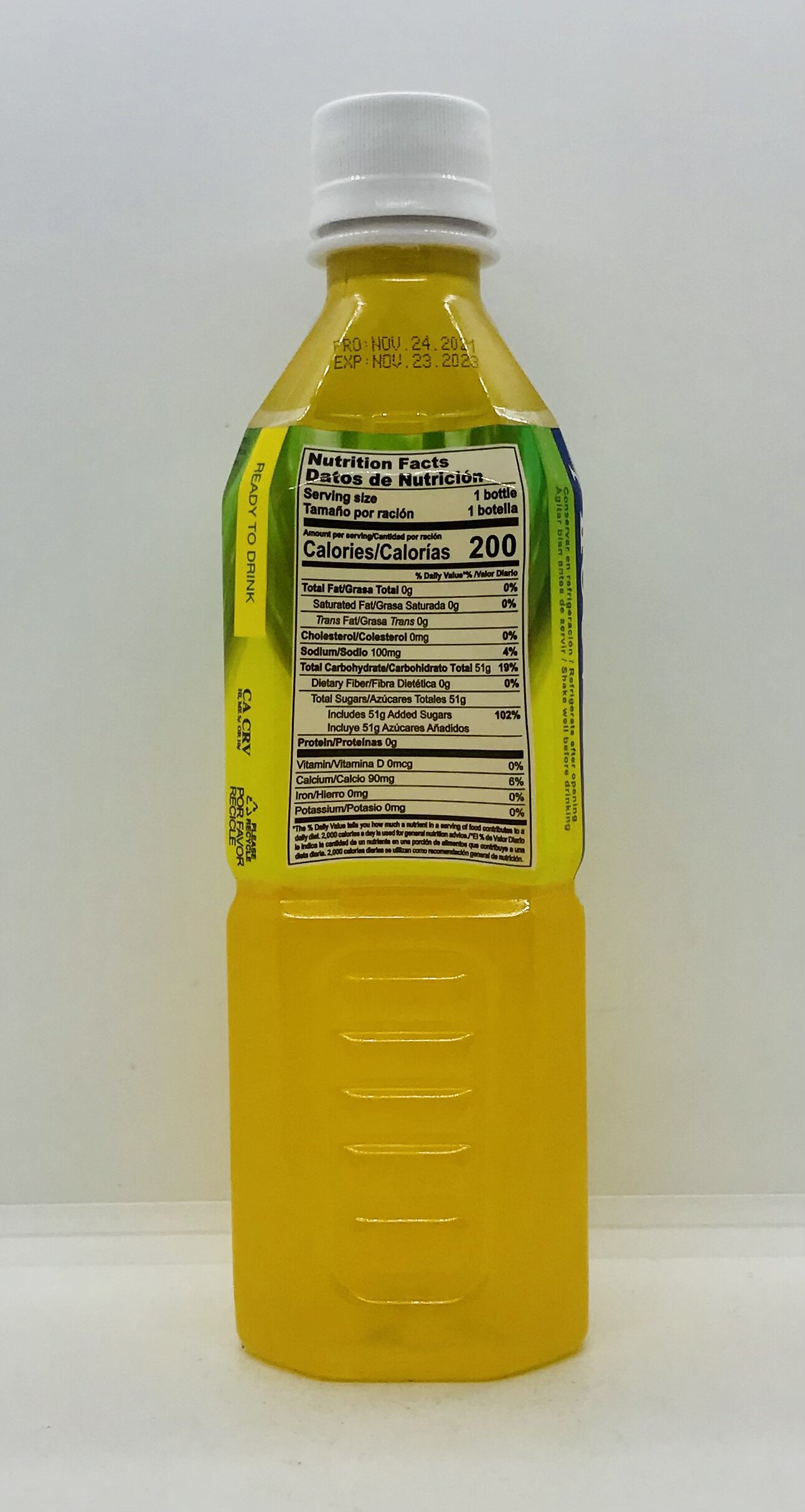 Purified water, aloe vera gel (8%), fructose, sugar, citric acid, calcium lactate, natural and artificial mango flavor, sodium citrate, natural and artificial citrus flavor, vitamin C, gellan gum, B-carotene.