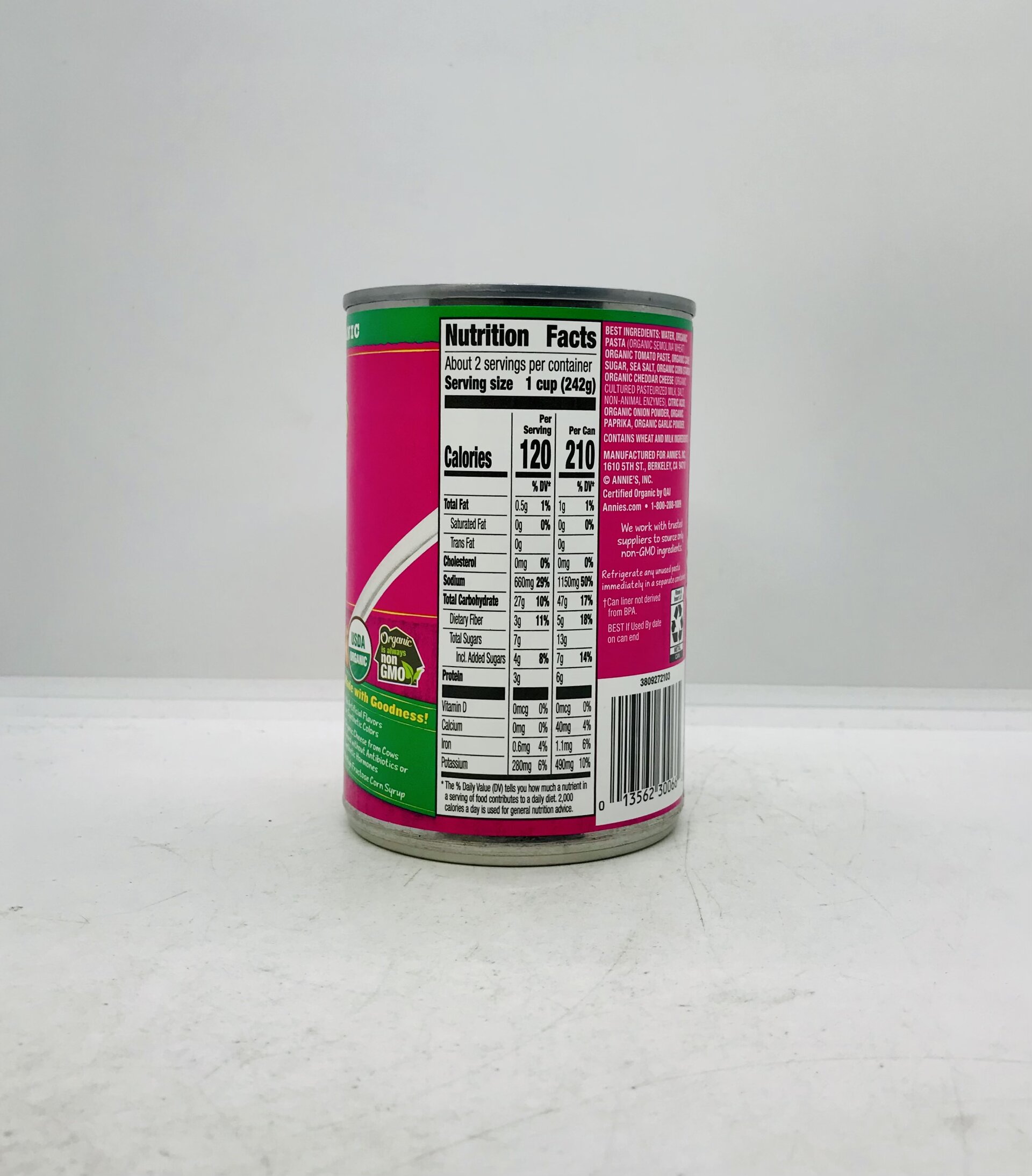 Water, organic pasta (organic semolina wheat), organic tomato paste, organic cane sugar, sea salt, organic corn starch, organic cheddar cheese (organic cultured pasteurized milk, salt, non-ANIMAL enzymes), citric acid, organic onion powder, organic paprika, organic garlic powder.