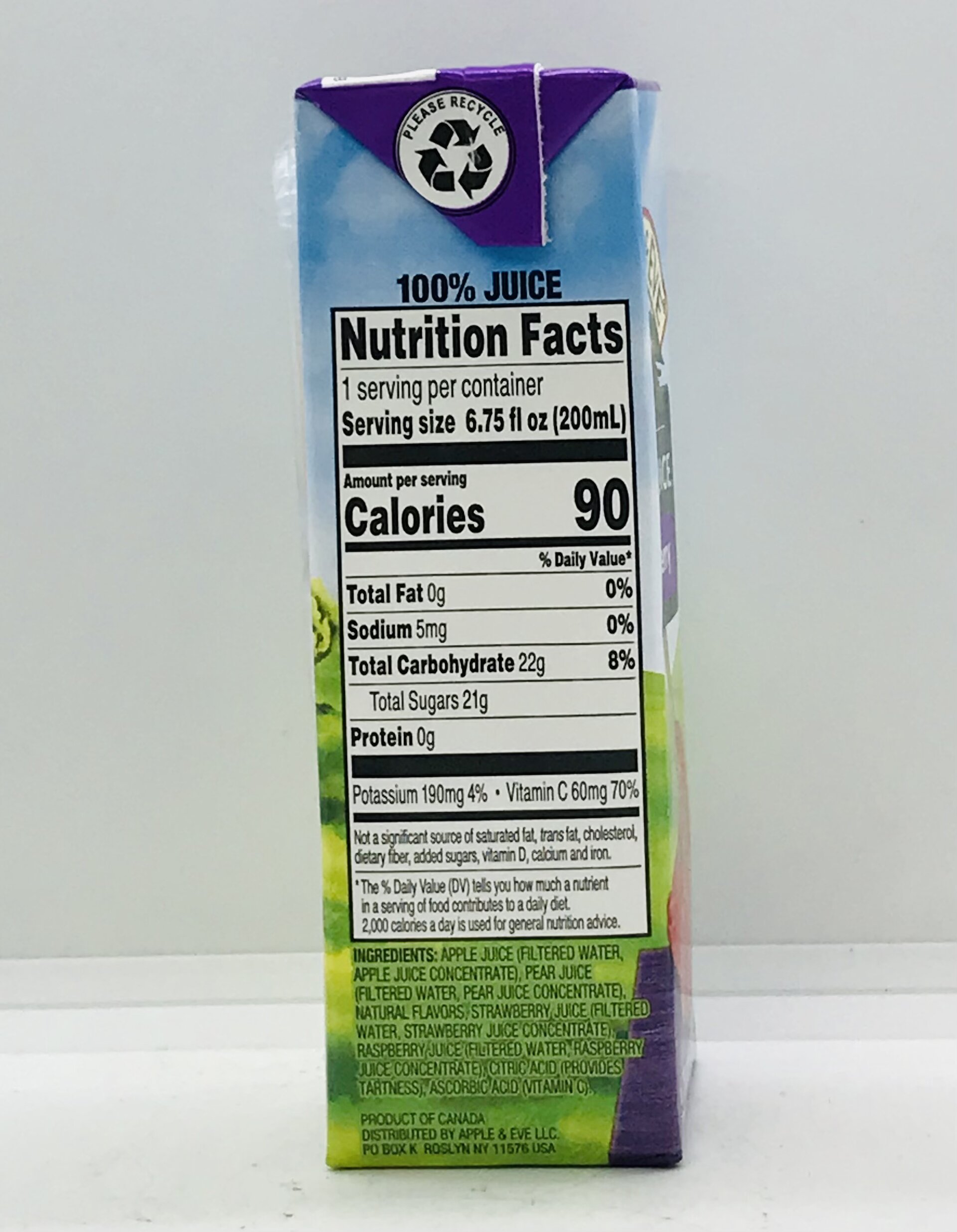 Apple juice (filtered water, apple juice concentrate), peach juice, natural flavors, strawberry juice, raspberry juice.