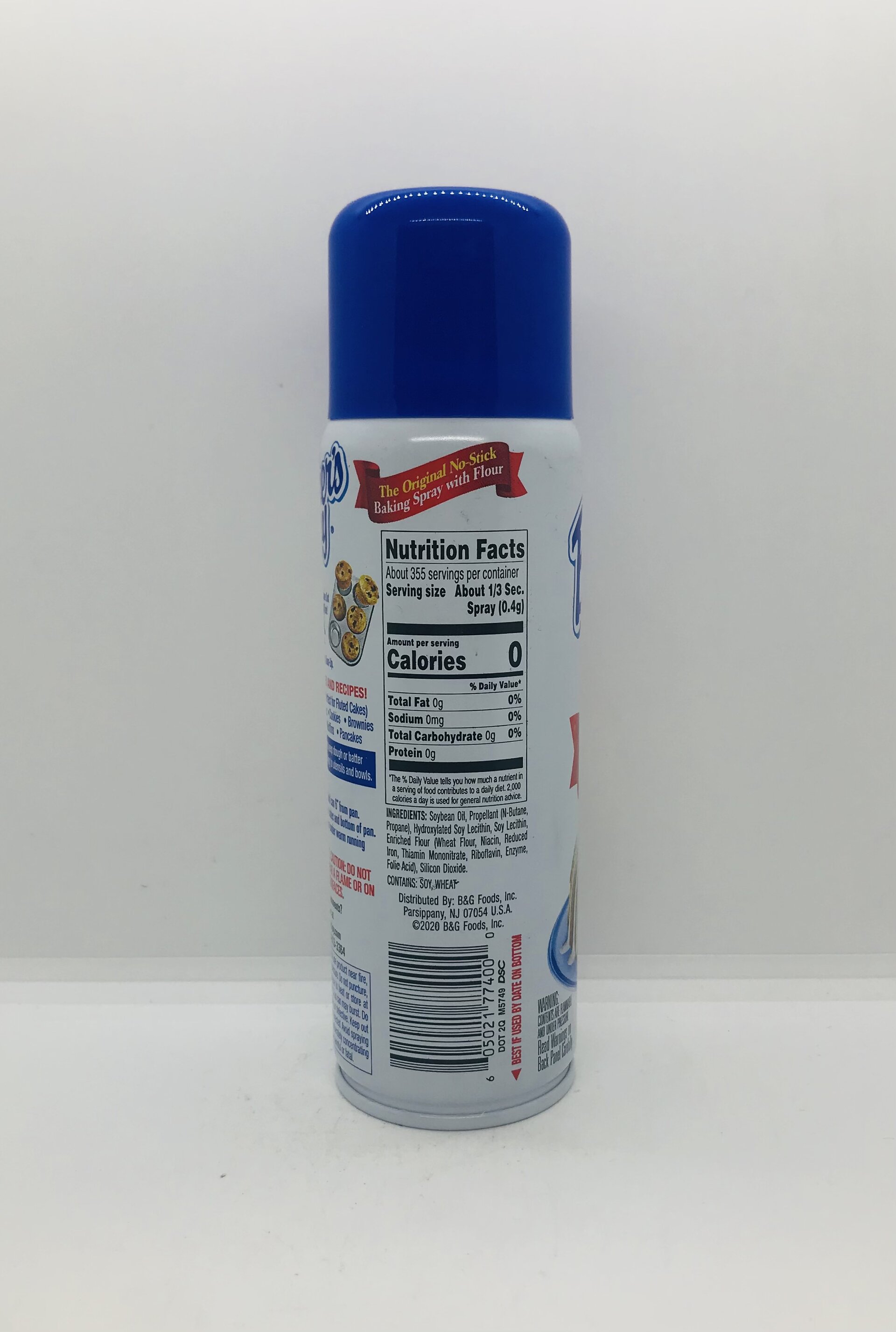 Soybean Oil, Propellant N-Butane, Propane), Hydroxylated Soy Lecithin, Soy Lectin, Enriched Four Wheat Flour, Niacin, Reduced Iron, Thiamin Mononitate, Ribollavin, Enzyme, Folic Acid), Silicon Dioxide.
