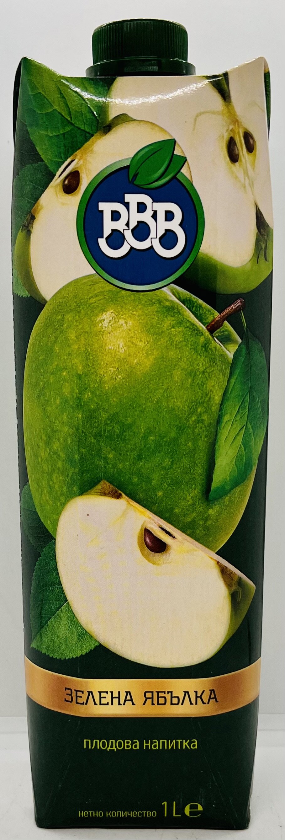 Water, glucose-fructose Syrup 149 g/apple puree (min. 9%), green apple base (min.8%) [concentrated juices apple and lemon, stabilizers: E414, E452, E440, E415, flavor, lemon extract, preservative: E202, colorants: E160a, E133, vitamins: C, E, B6, B1, B12), acidifier: E330, natural flavor.