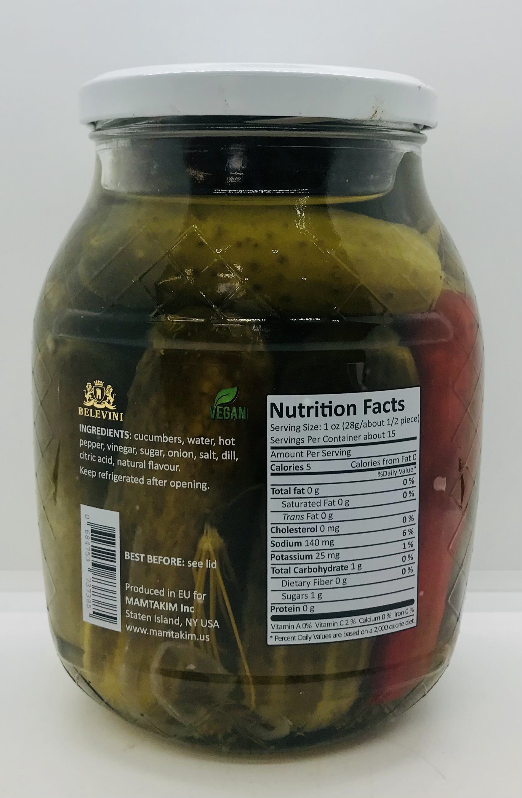 Cucumbers, water, hot pepper, vinegar, sugar, onion, salt, dill, citric acid, natural flavour.