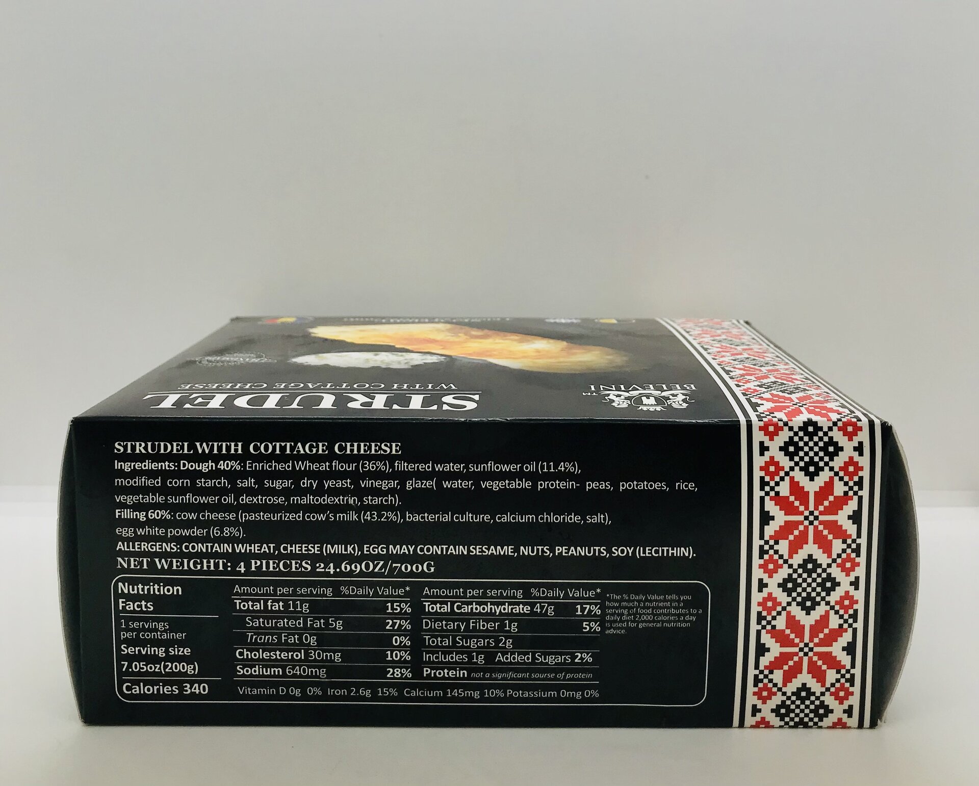 Dough 40%: Enriched Wheat flour (36%), filtered water, sunflower oil (11.4%), modified corn starch, salt, sugar, dry yeast, vinegar, glaze( water, vegetable protein- peas, potatoes, rice, vegetable sunflower oil, dextrose, maltodextrin, starch).