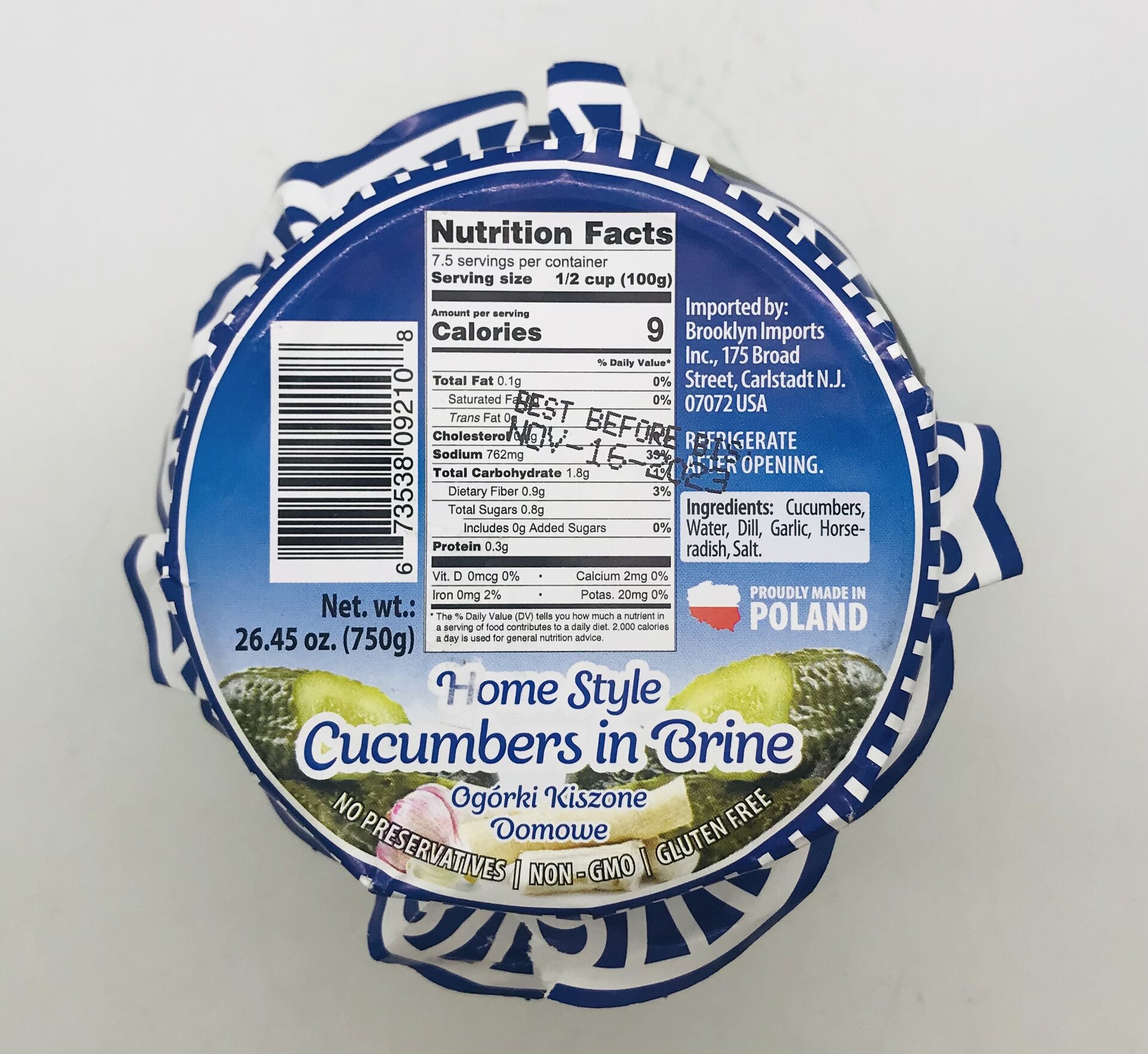 Cucumbers, water, dill, garlic, horseradish, salt.