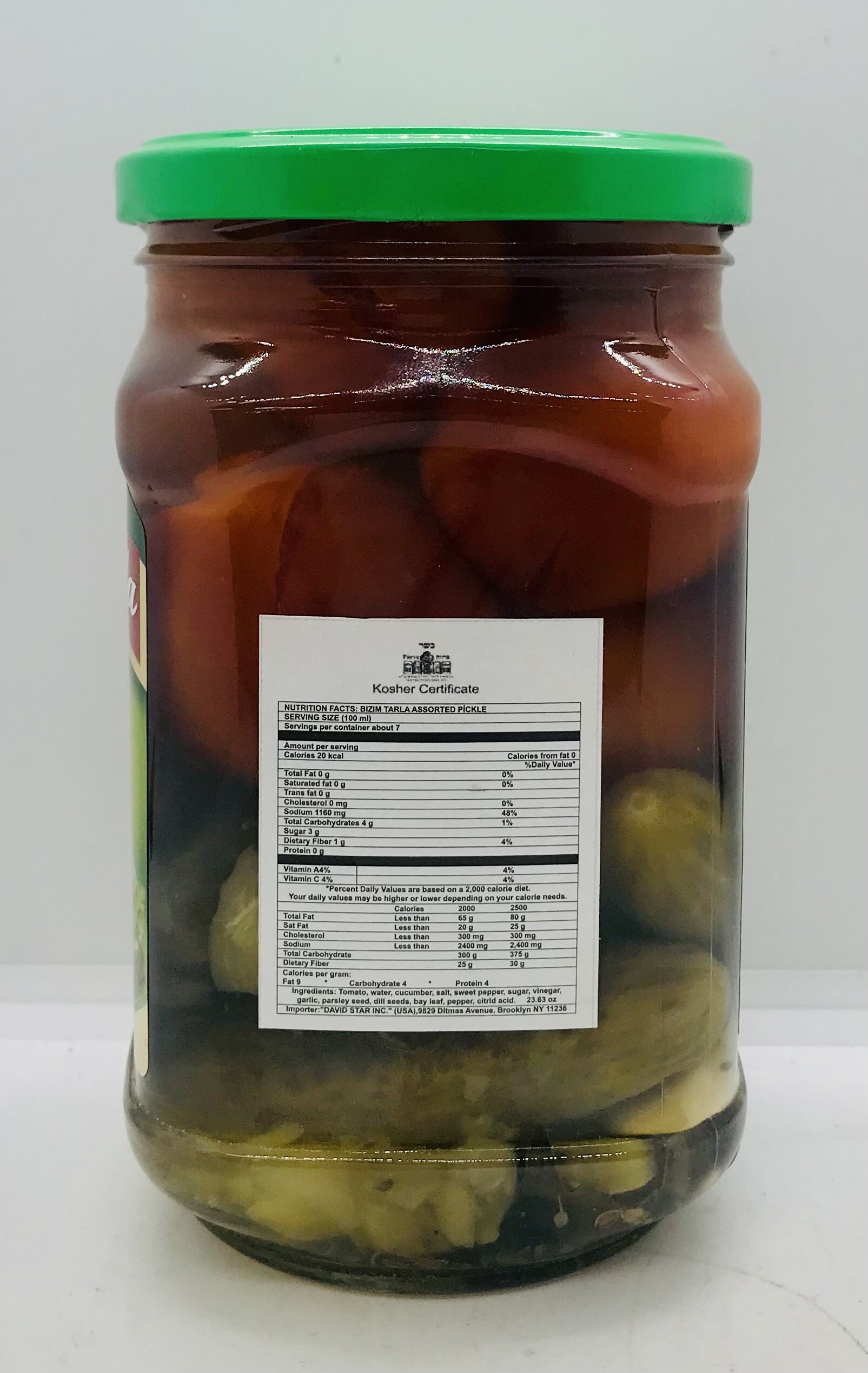 Tomato, water, cucumber, salt, sweet pepper, sugar, vinegar, garlic, parsley seed, dill seeds, bay leaf, pepper, citric acid.