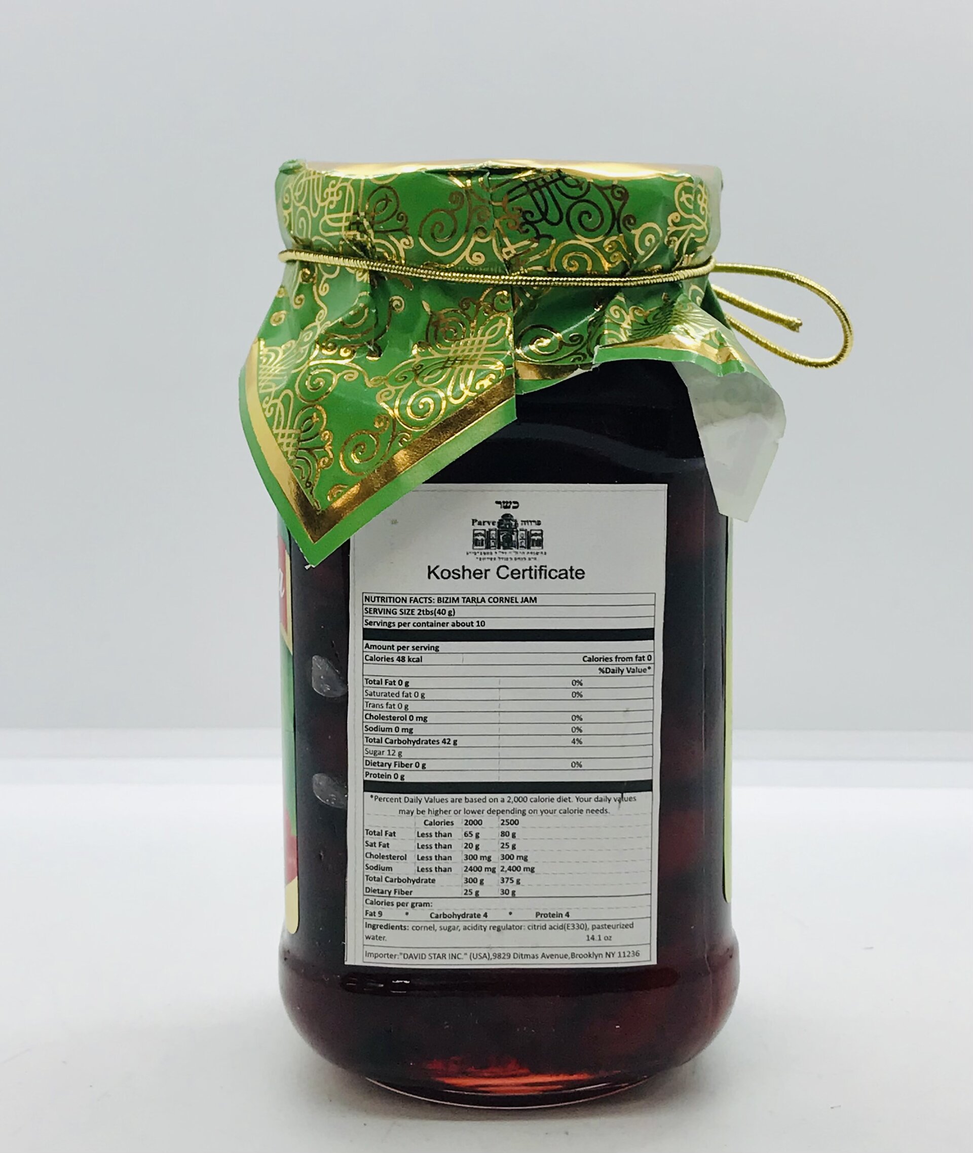 Cornel, sugar, acidity regulator: citric acid (E 330), pasteurized water.