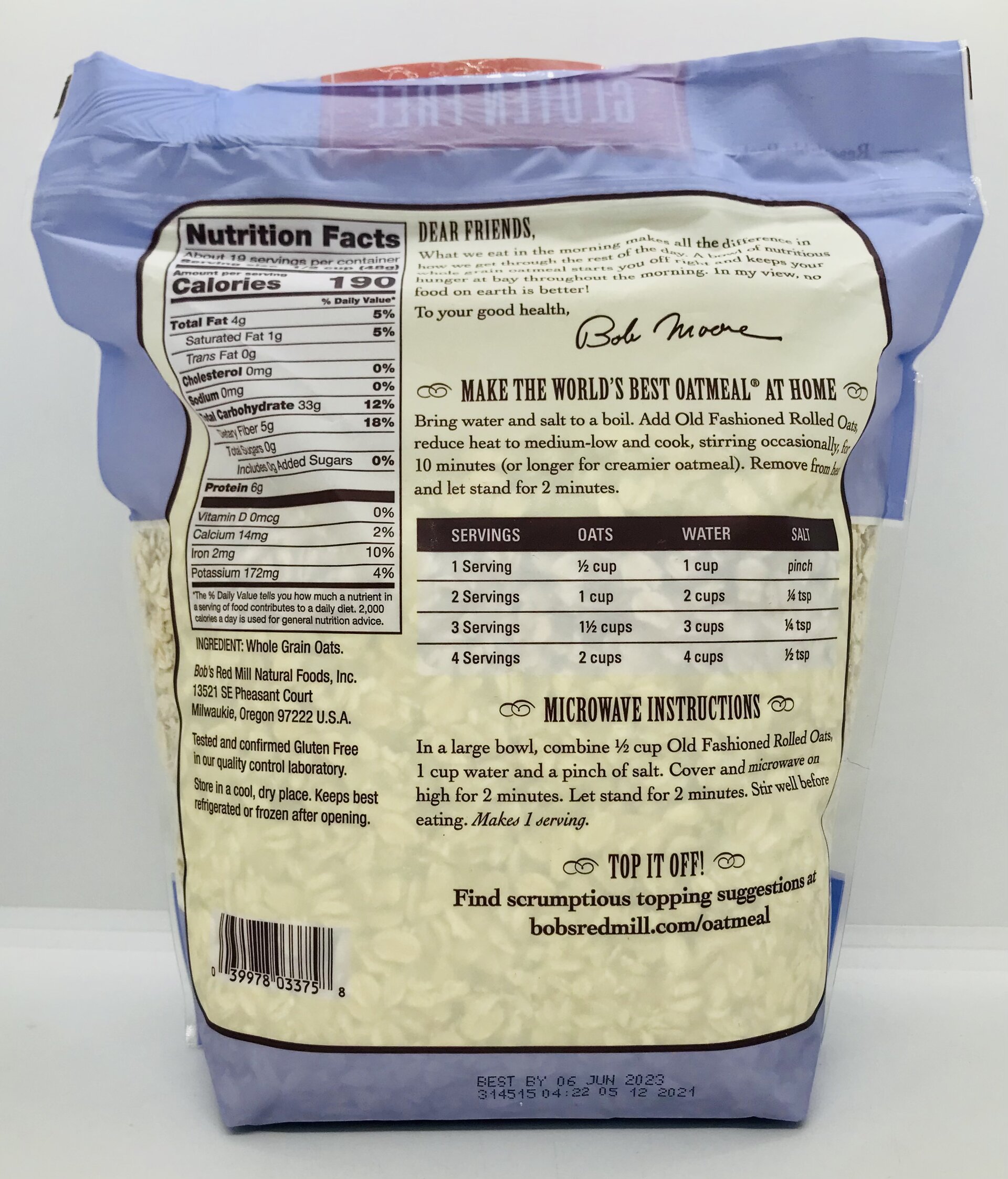 Whole grain oats.