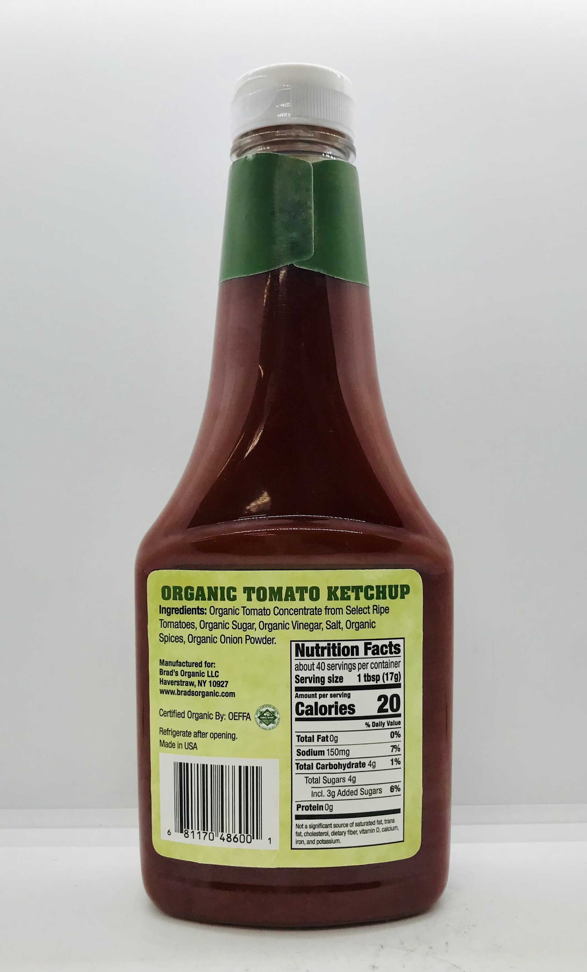 Organic tomato concentrate from select ripe tomatoes, organic sugar, organic vinegar, salt, organic spices, organic onion powder.