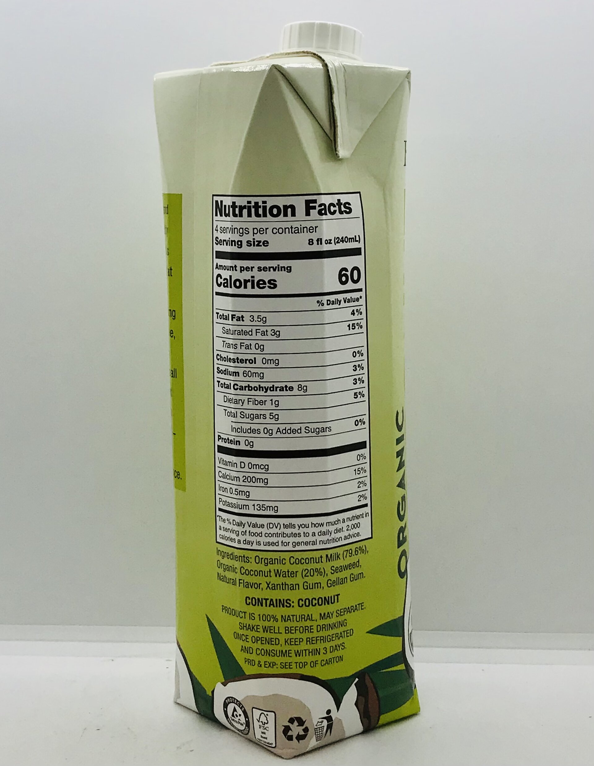Organic Coconut milk, organic coconut water, seaweed, natural flavor, xanthan gum, gellan gum.
