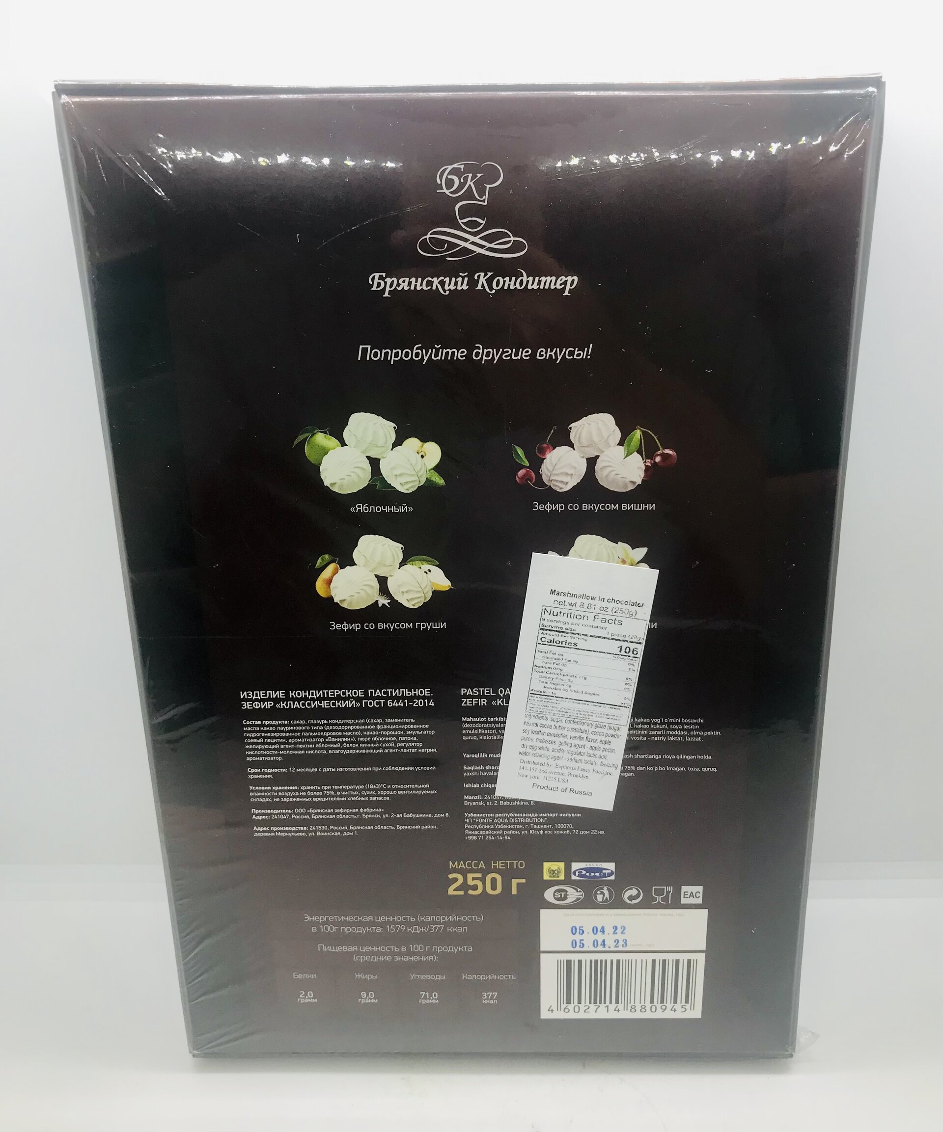 Sugar, confectionery glaze (sugar natural cocoa butter substitute), cocoa powder, soy lecithin emulsifier, vanillin flavor, apple puree, molasses, gelling agent - apple pectin, day egg white, acidity regulator lactic acid, water-retaining agent-sodium lactate, flavoring.