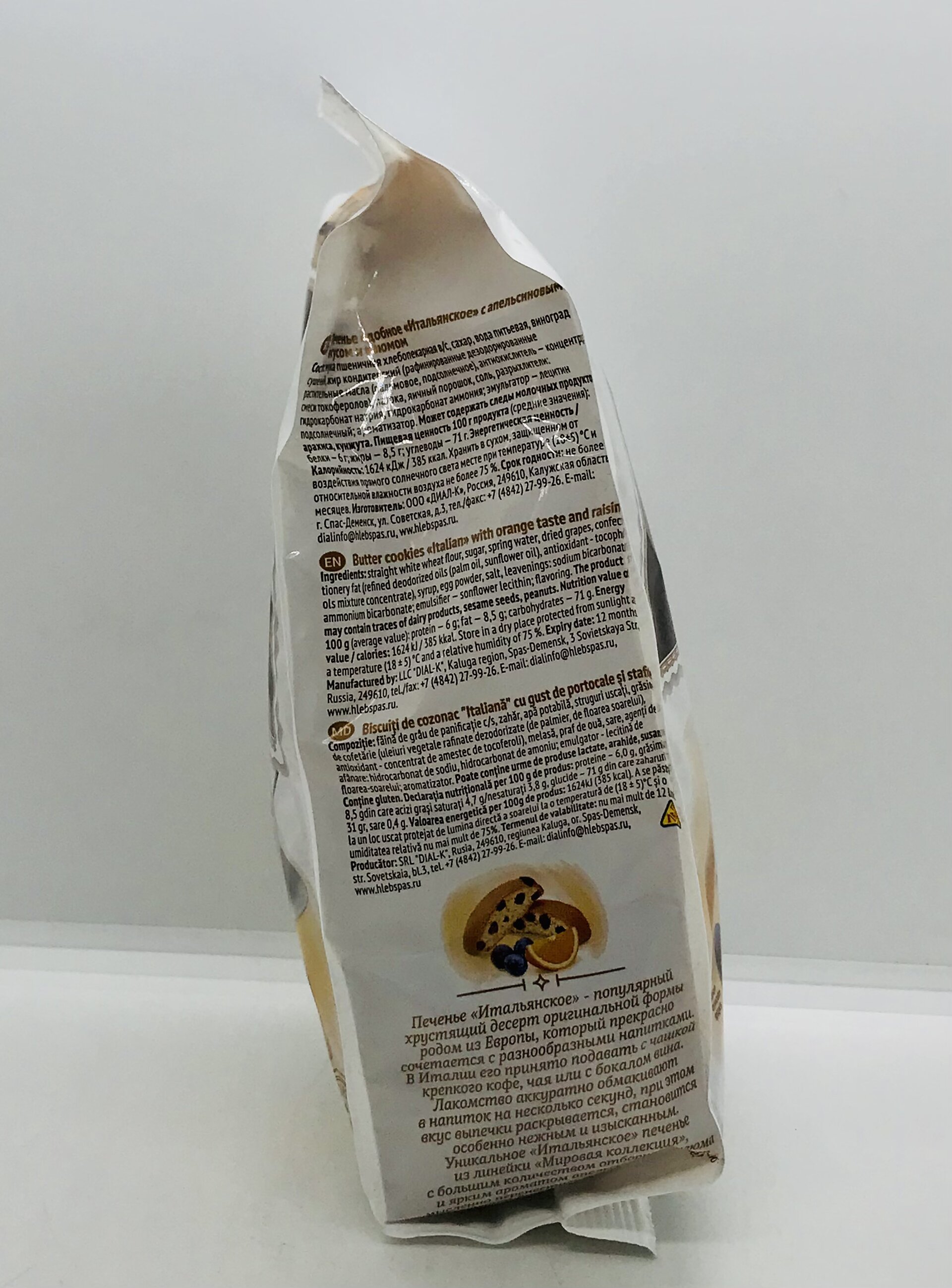 Straight white wheat flour, sugar, spring water, dried grapes, confectionery fat (palm oil, sunflower oil), antioxidant-tocopherols mixture concentrate, syrup, egg powder, salt leavenings sodium bicarbonate, ammonium bicarbonate, emulsifier -sonflower lecithin flavoring.