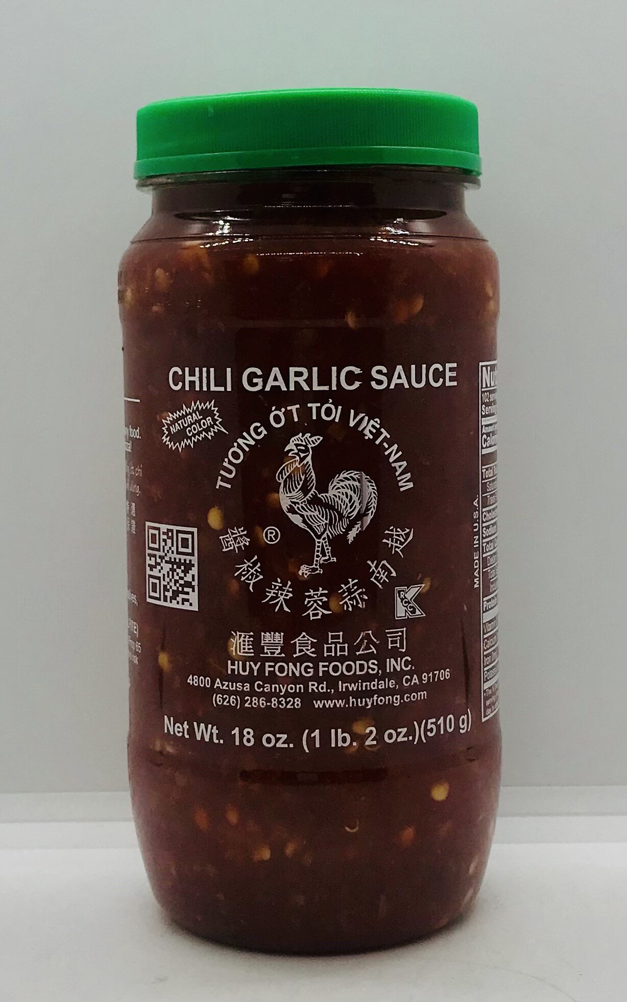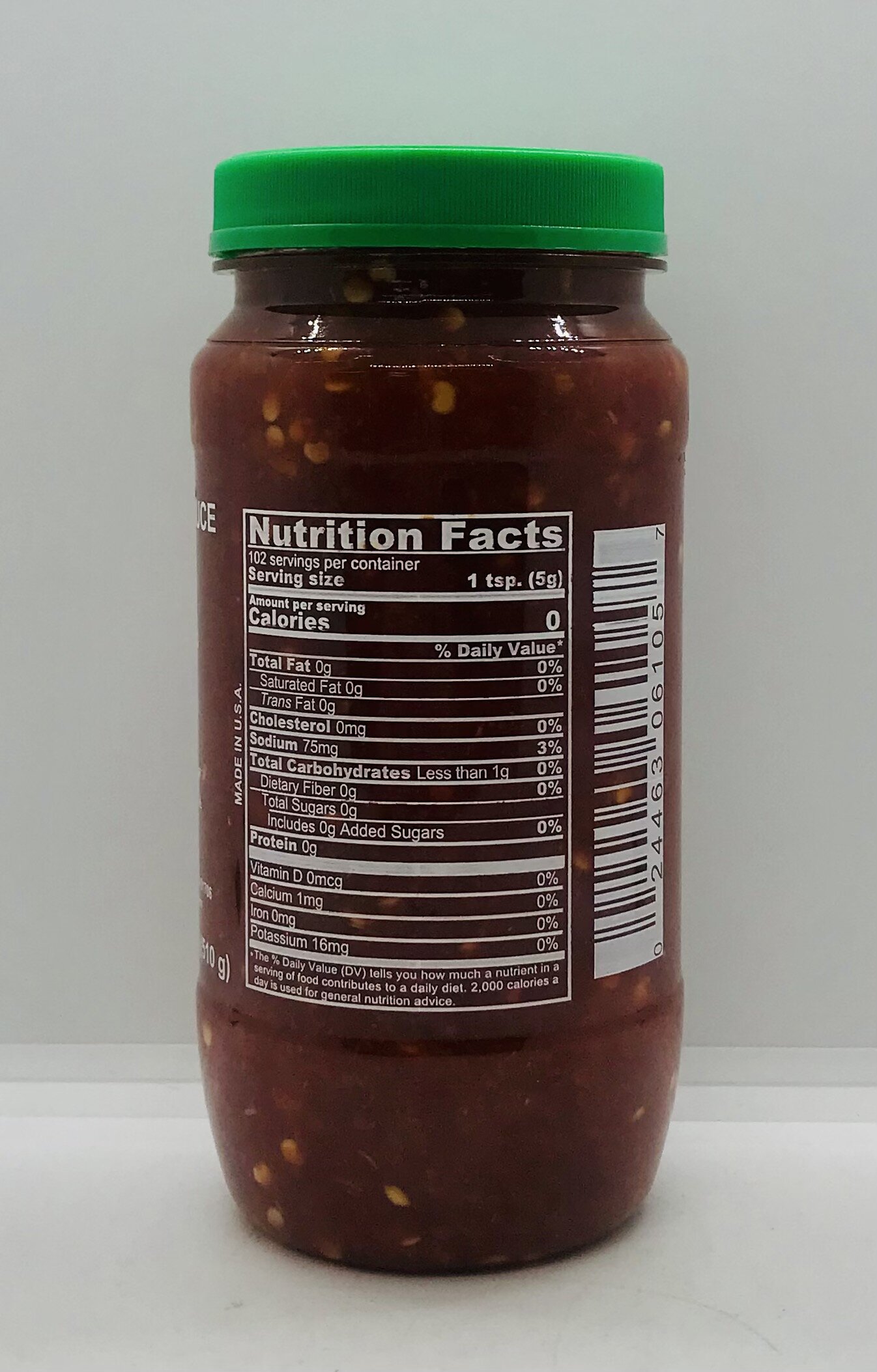 Chili, salt, garlic, acetic acid, potassium sorbate and sodium bisulfite as preservatives, xanthan gum.