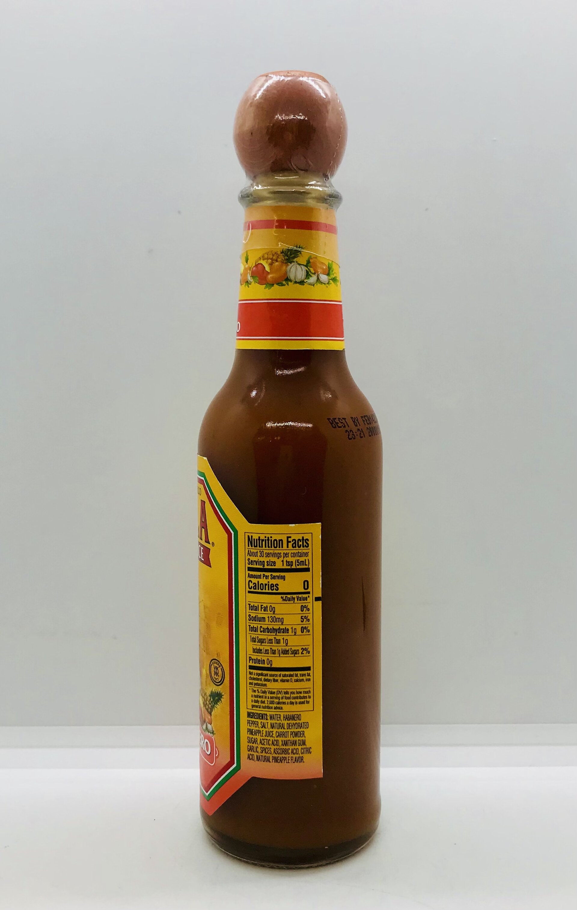 Water, habanero pepper, salt, natural dehydrate pineapple juice, carrot powder, sugar, acetic acid, xanthan gum, garlic, spices, ascorbic acid, citric acid, natural pineapple flavor.