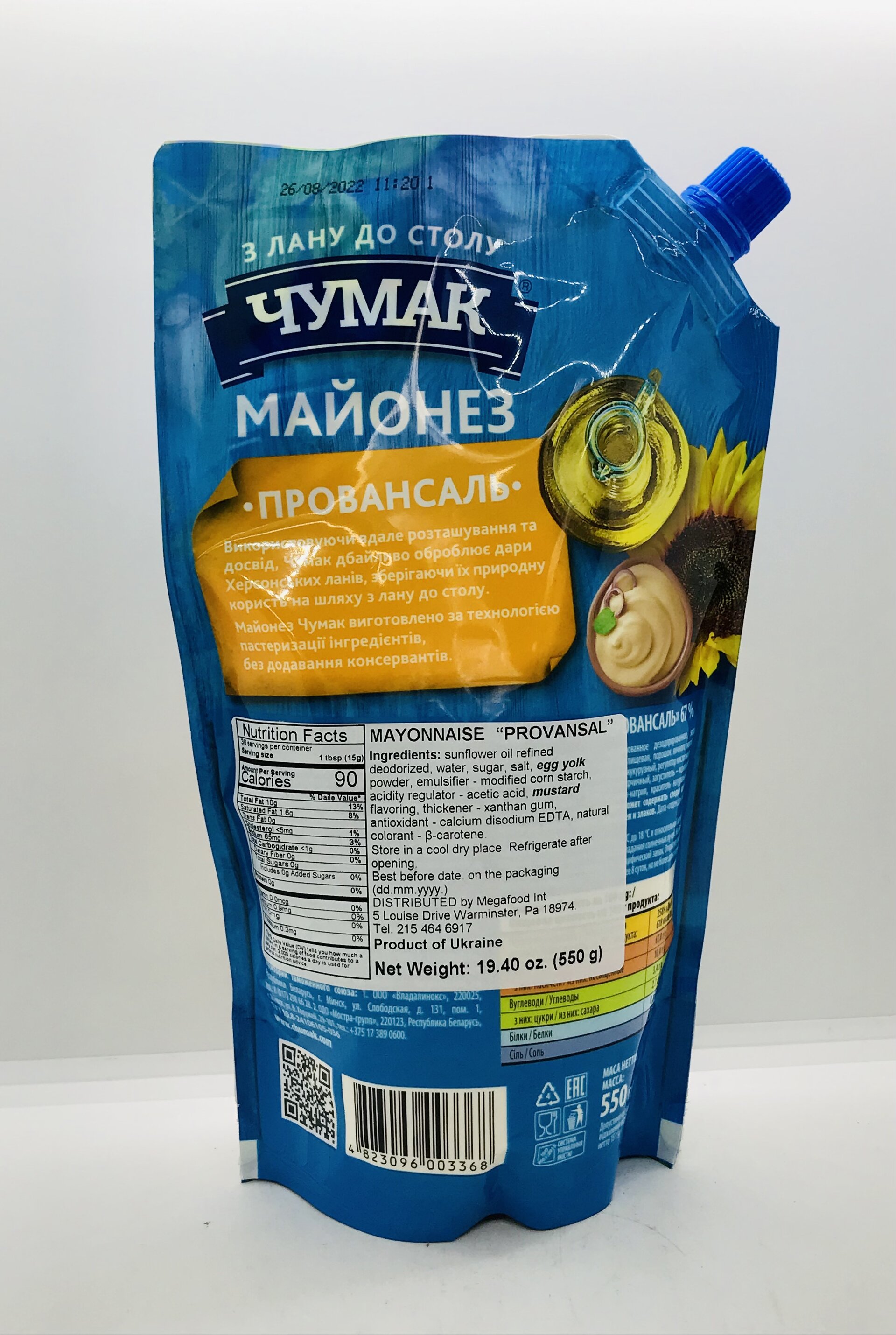 Sunflower oil refined deodorized, water, sugar, salt, egg yolk powder, emulsifier - modified corn starch,