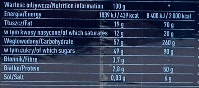 Dark chocolate 54%, glucose syrup, sugar, sweetened condensed milk, alcohol (3.5%).