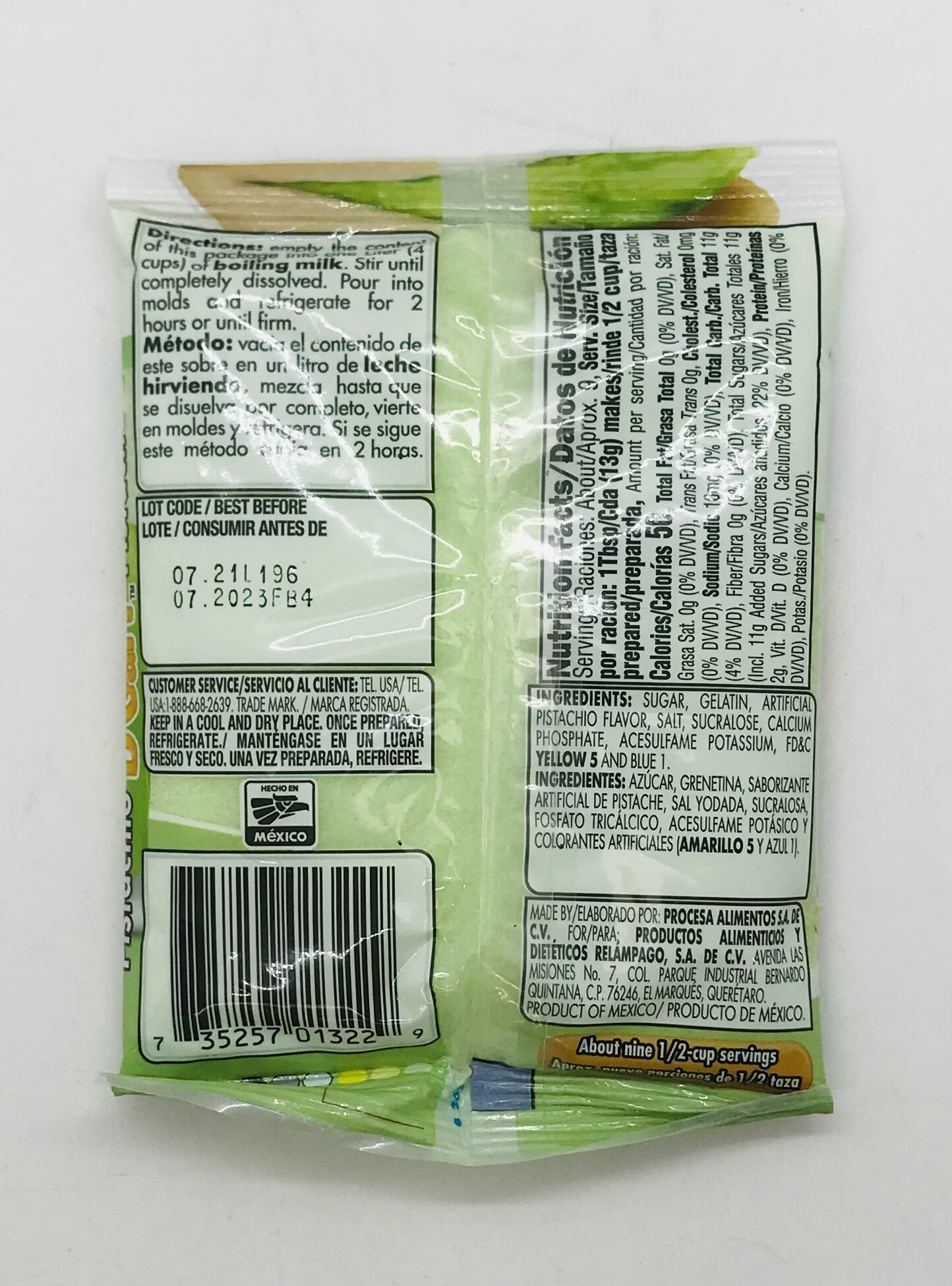 SUGAR, GELATIN, ARTIFICIAL PISTACHIO FLAVOR, SALT, SUCRALOSE, CALCIUM PHOSPHATE ACESULFAME POTASSIUM, FD&C YELLOW 5 AND BLUE 1.