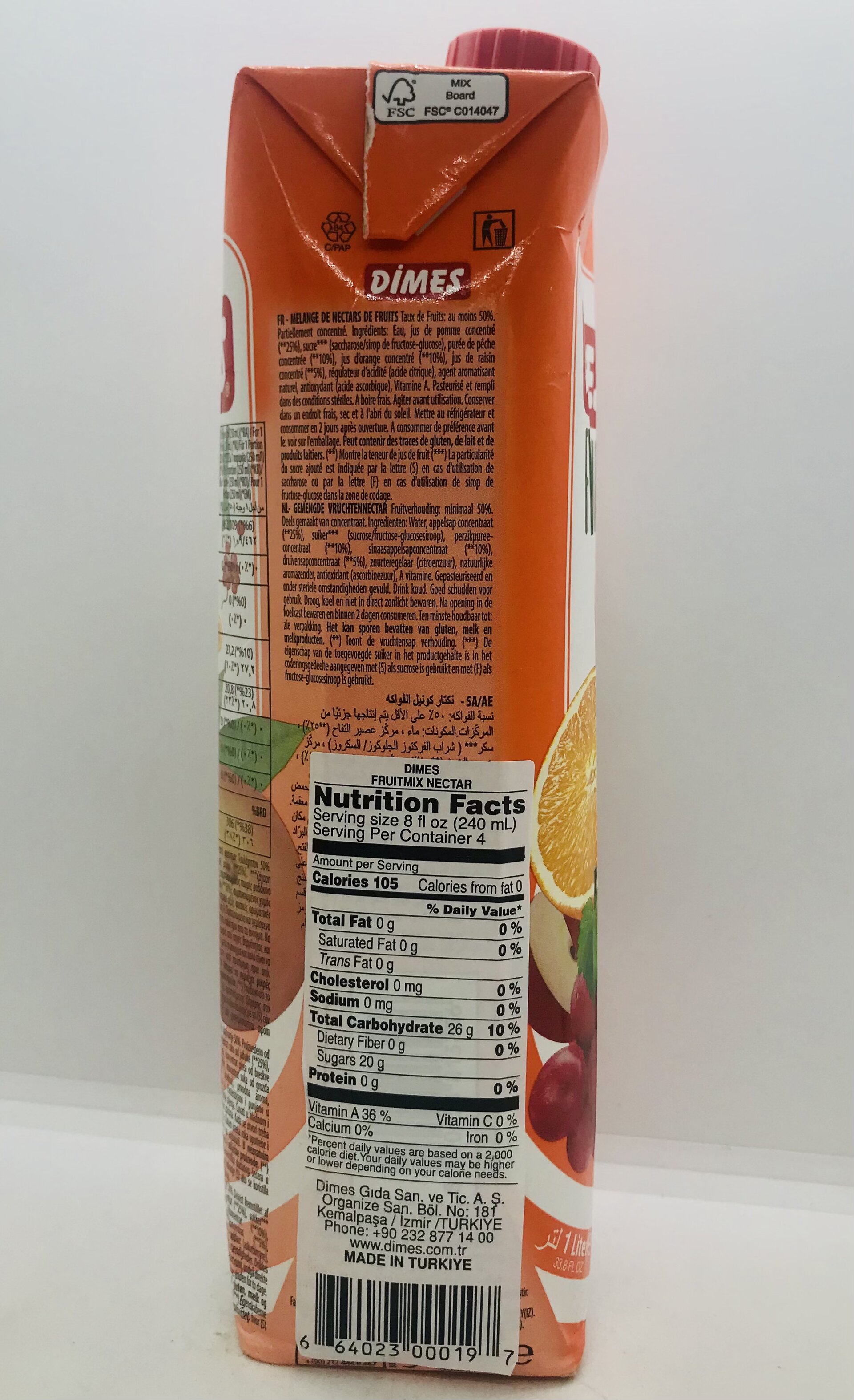 Water, apple juice concentrate, sugar, peach puree concentrate, orange juice concentrate, grape juice concentrate, acidity regulator.