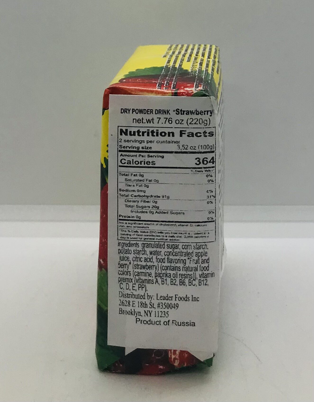 Granulated sugar, corn starch, potato starch, water, concentrated apple juice, citric acid, food flavoring (fruit and berry) (strawberry), (contains natural food colors (carmine, paprika oil resins)), vitamin premix (vitamins A, B1, B2,B6, BC, B12, C, D, E, PP).