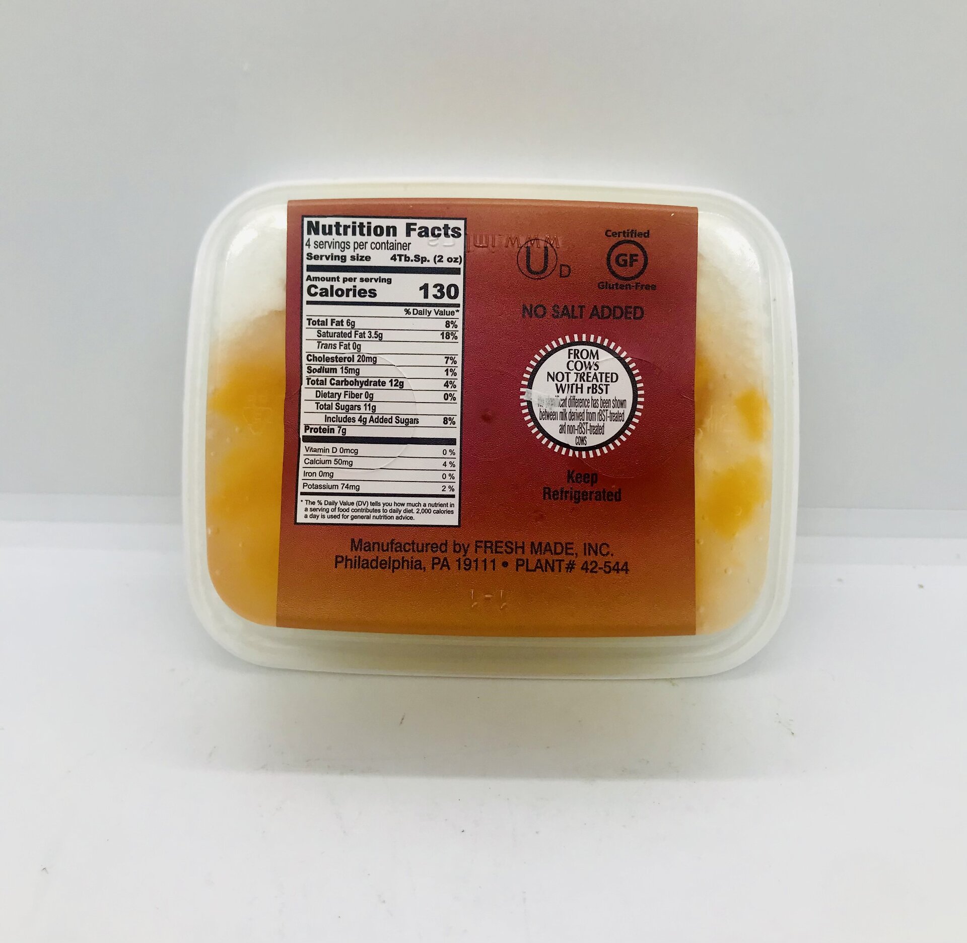 Cultured Pasteurized Grade A Milk, Peach Filling, Sugar, Potassium Sorbate, Contains Milk