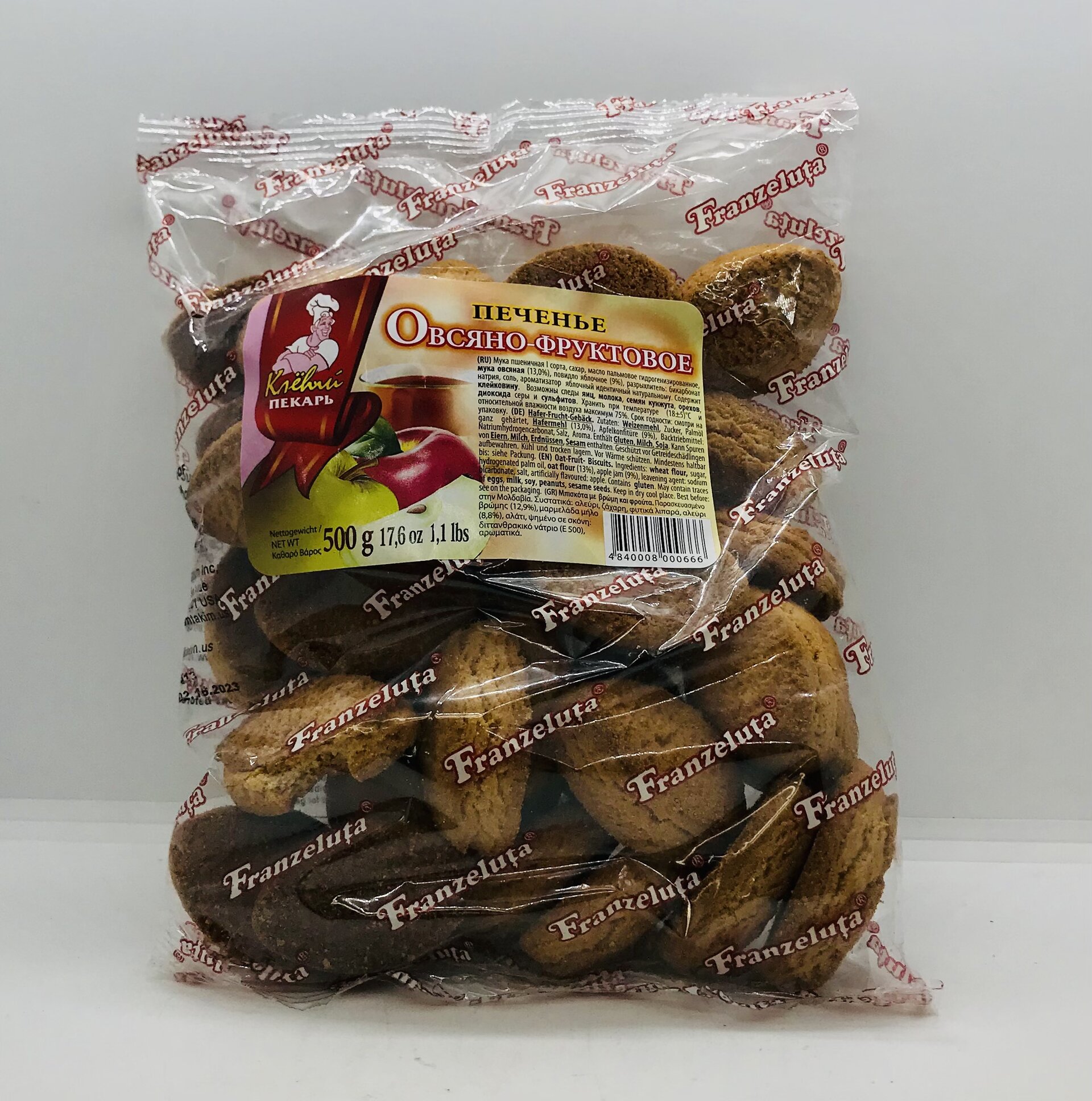 Wheat flour, sugar, hydrogenated palm oil, oat flour, apple jam, leavening agent: sodium bicarbonate, salt, artificially flavoured: apple.