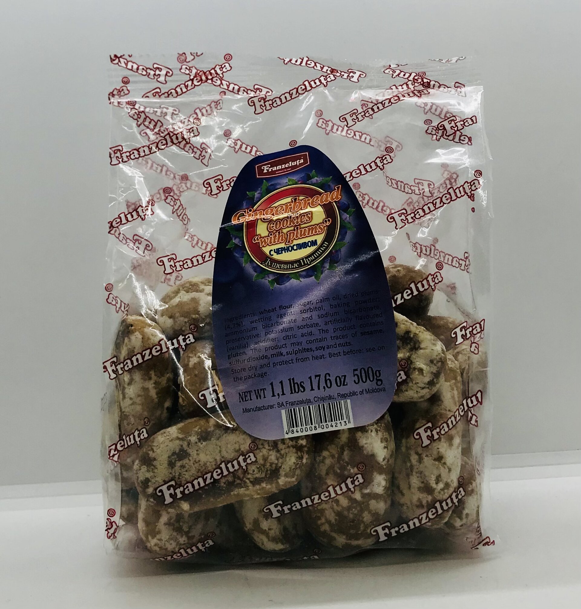 Wheat flour, sugar, palm oil, dried plums, wetting agent: sorbitol, baking powder: ammonium bicarbonate and sodium bicarbonate, preservative: potassium sorbate, artificially flavoured, acidifier: citric acid.