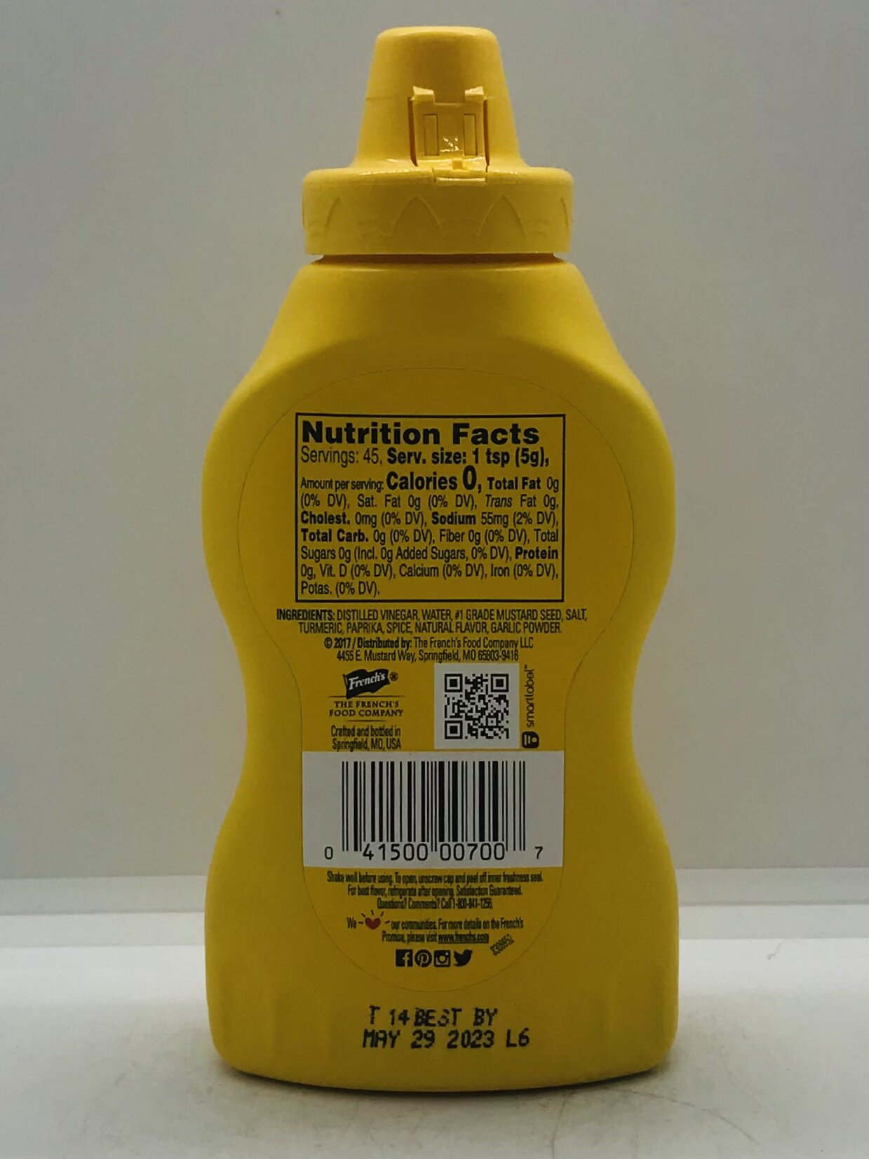 Distilled vinegar, water, #1 grade mustard seed, salt, turmeric, paprika, spice, natural flavor, garlic powder.