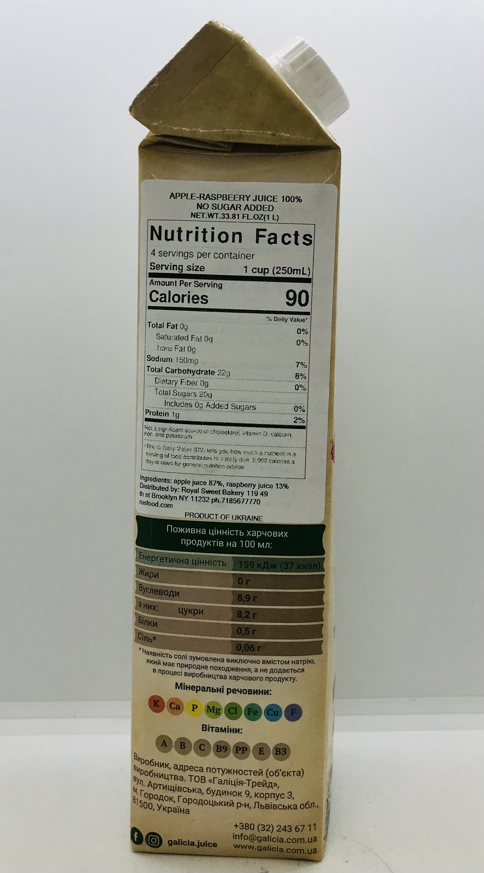Apple juice, raspberry juice.