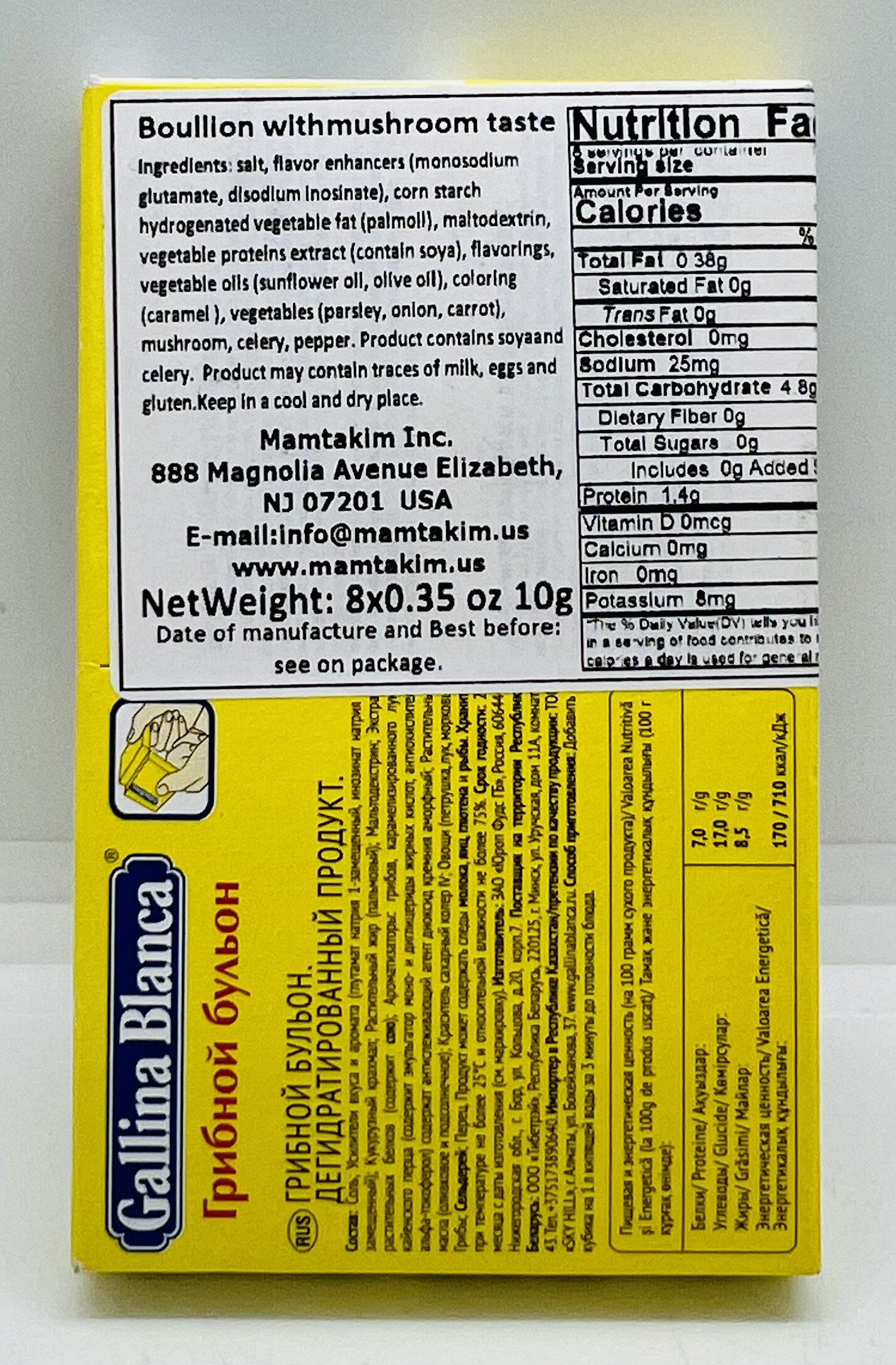 Salt, flavor enhancers, corn starch hydrogenated vegetable fat, maltodextrin, vegetable proteins extract, flavorings, vegetable oils, coloring, vegetables, mushroom, celery, pepper.