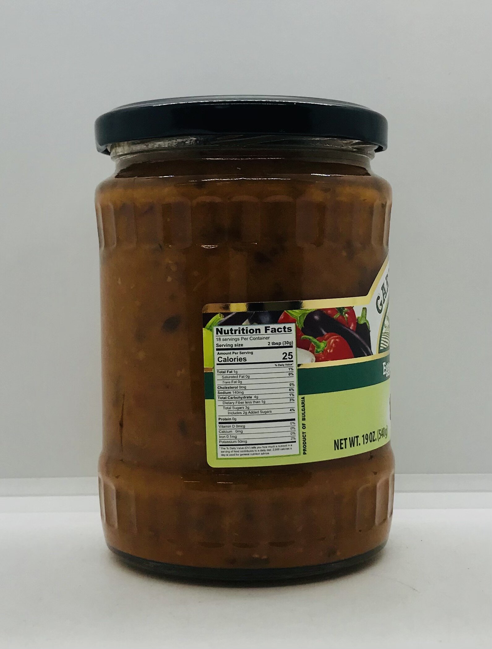 Eggplant, water, pepper, sugar, tomato paste, sunflower oil, modified potato starch, salt, garlic, glucono delta-lactone, citric acid.