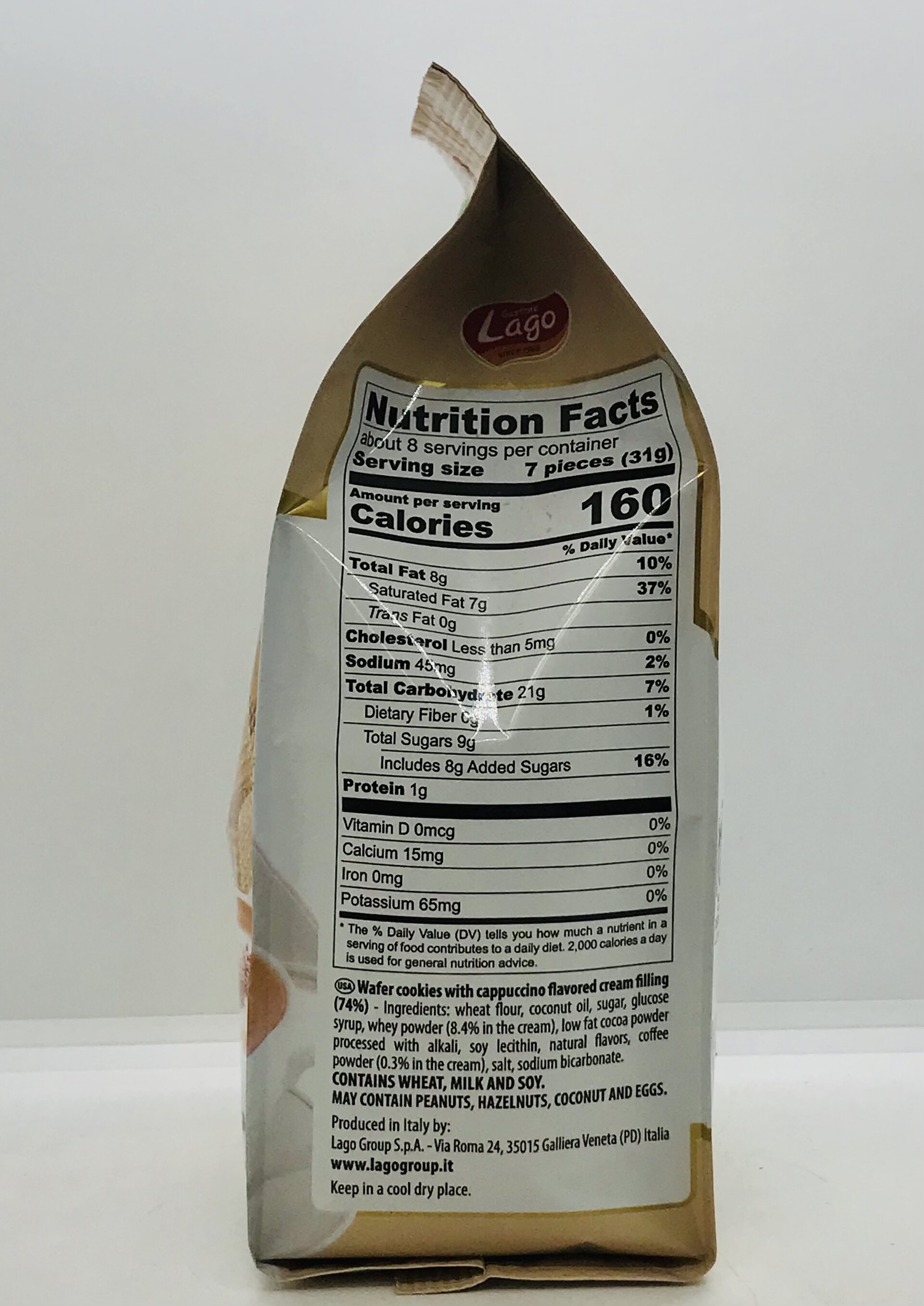 Wheat flour, coconut oil, sugar, glucose syrup, whey powder (8.4% in the cream), low fat cocoa powder processed with alkali, soy lecithin, natural flavors, coffee powder (0.3% in the cream), salt, sodium bicarbonate.