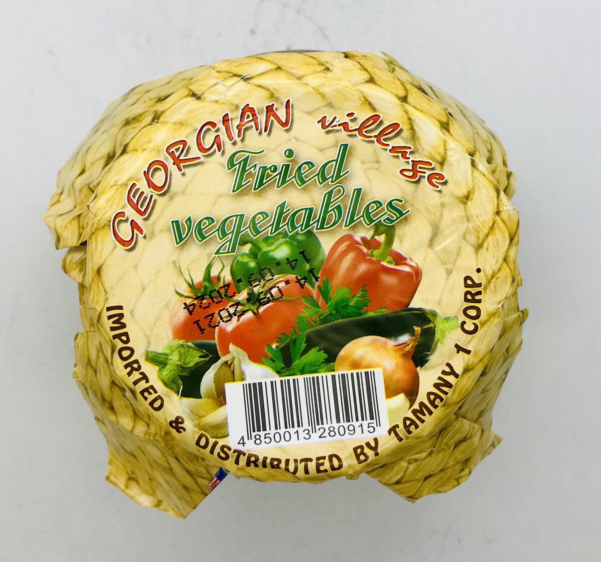 Eggplant, bell pepper, onion, garlic, tomato paste, greens, vegetable oil, salt.