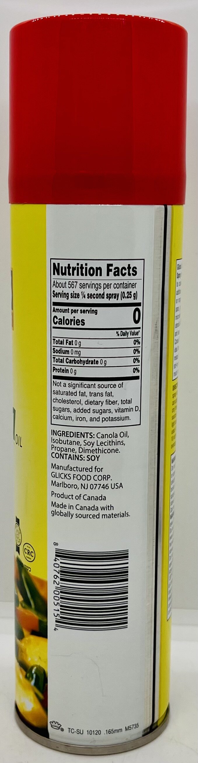 Canola oil, isobutane, soy lecithin's, propane, dimethicone.