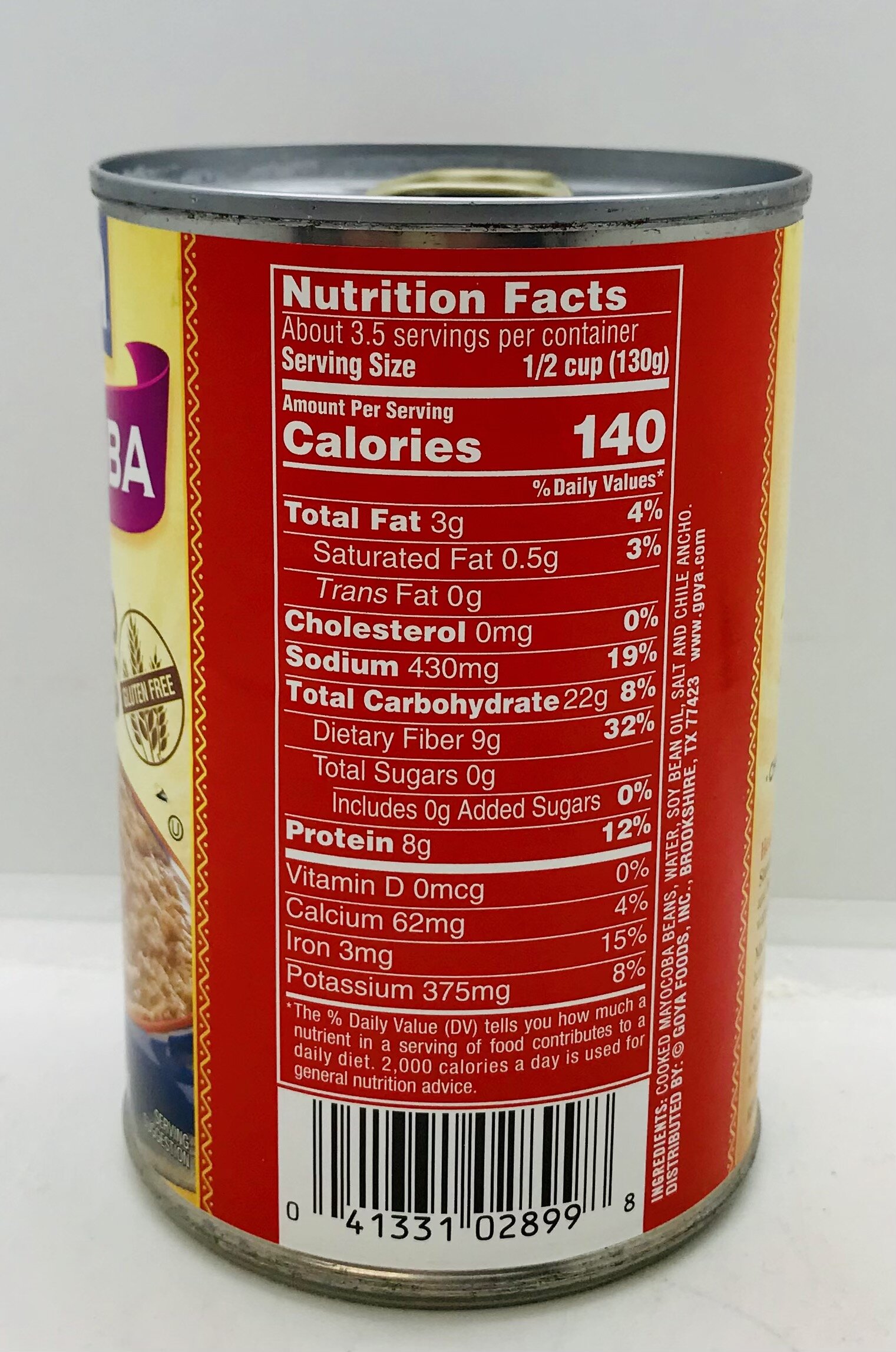 Cooked mayocoba beans, water, soy bean oil, salt and chile ancho.