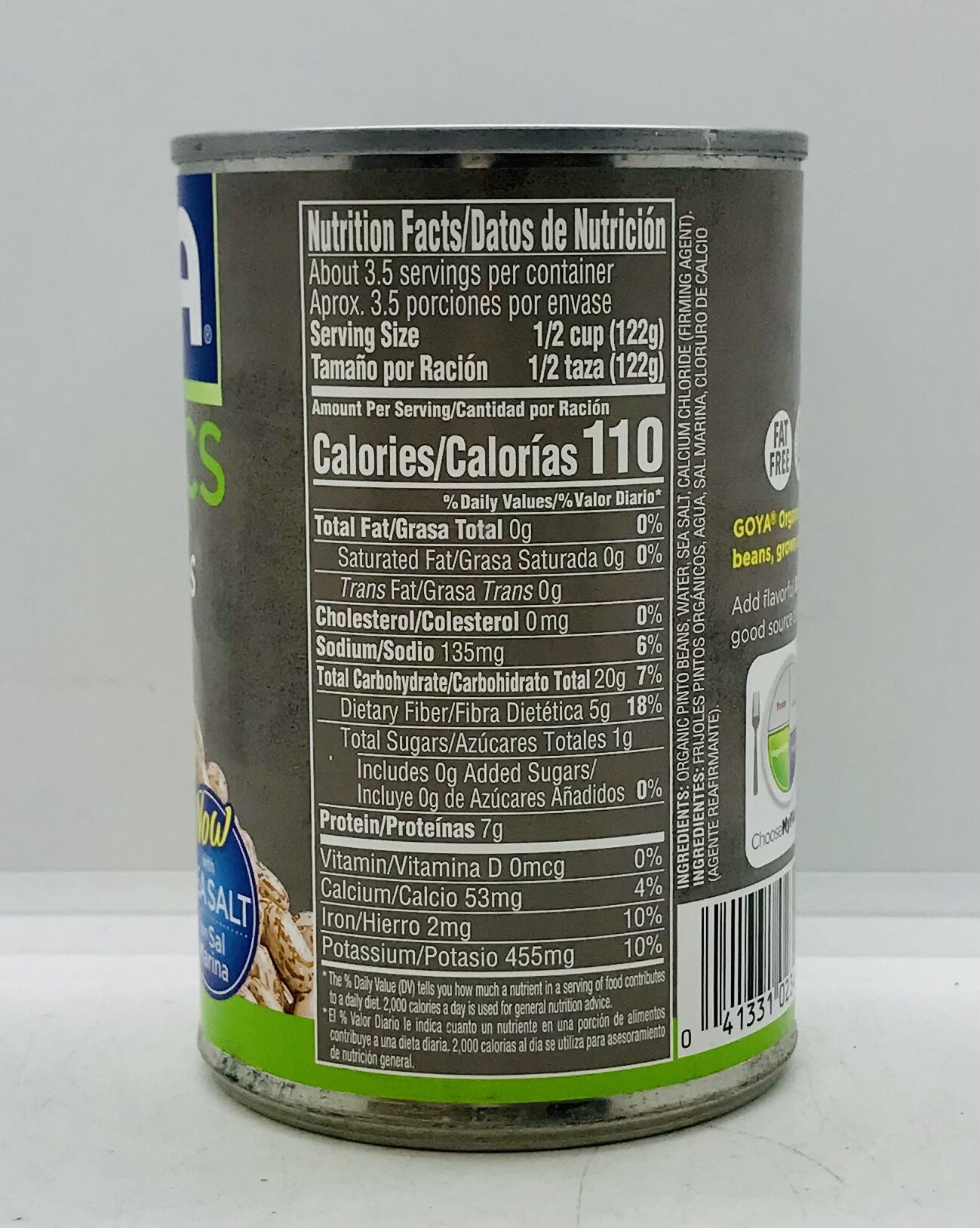 Organic pinto beans, sea salt, water, calcium chloride.