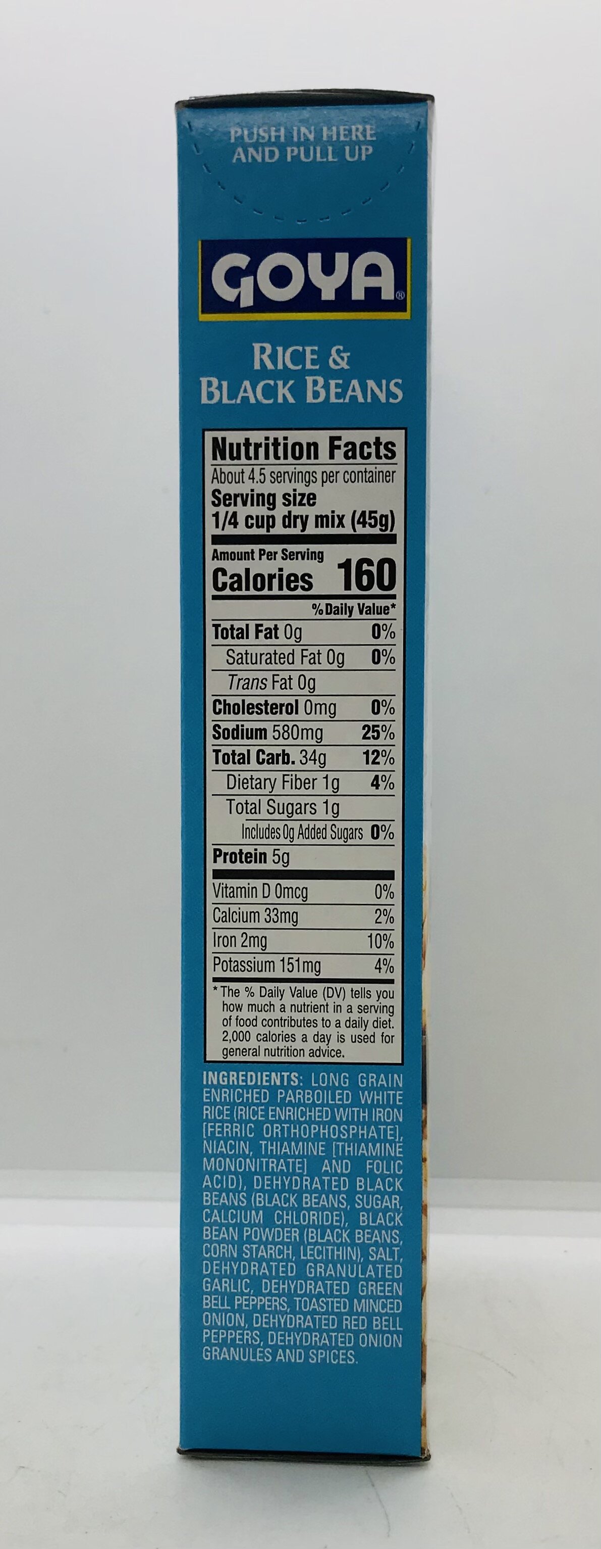 LONG GRAIN ENRICHED PARBOILED WHITE RICE (RICE ENRICHED WITH IRON [FERRIC ORTHOPHOSPHATE], NIACIN, THIAMINE (THIAMINE MONONITRATE] AND FOLIC ACID), DEHYDRATED BLACK BEANS (BLACK BEANS, SUGAR, CALCIUM CHLORIDE), BLACK BEAN POWDER (BLACK BEANS, CORN STARCH, LECITHIN), SALT, DEHYDRATED GRANULATED GARLIC, DEHYDRATED GREEN BELL PEPPERS, TOASTED MINCED ONION, DEHYDRATED RED BELL PEPPERS, DEHYDRATED ONION GRANULES AND SPICES.