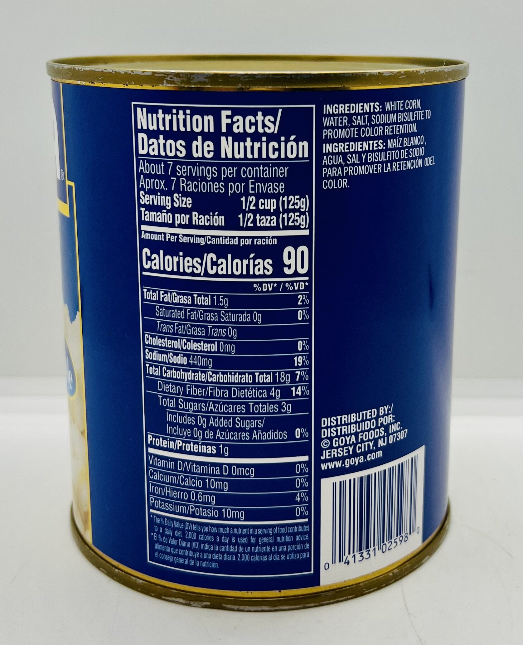Prepared with corn, water, salt, sodium bisulfite.
