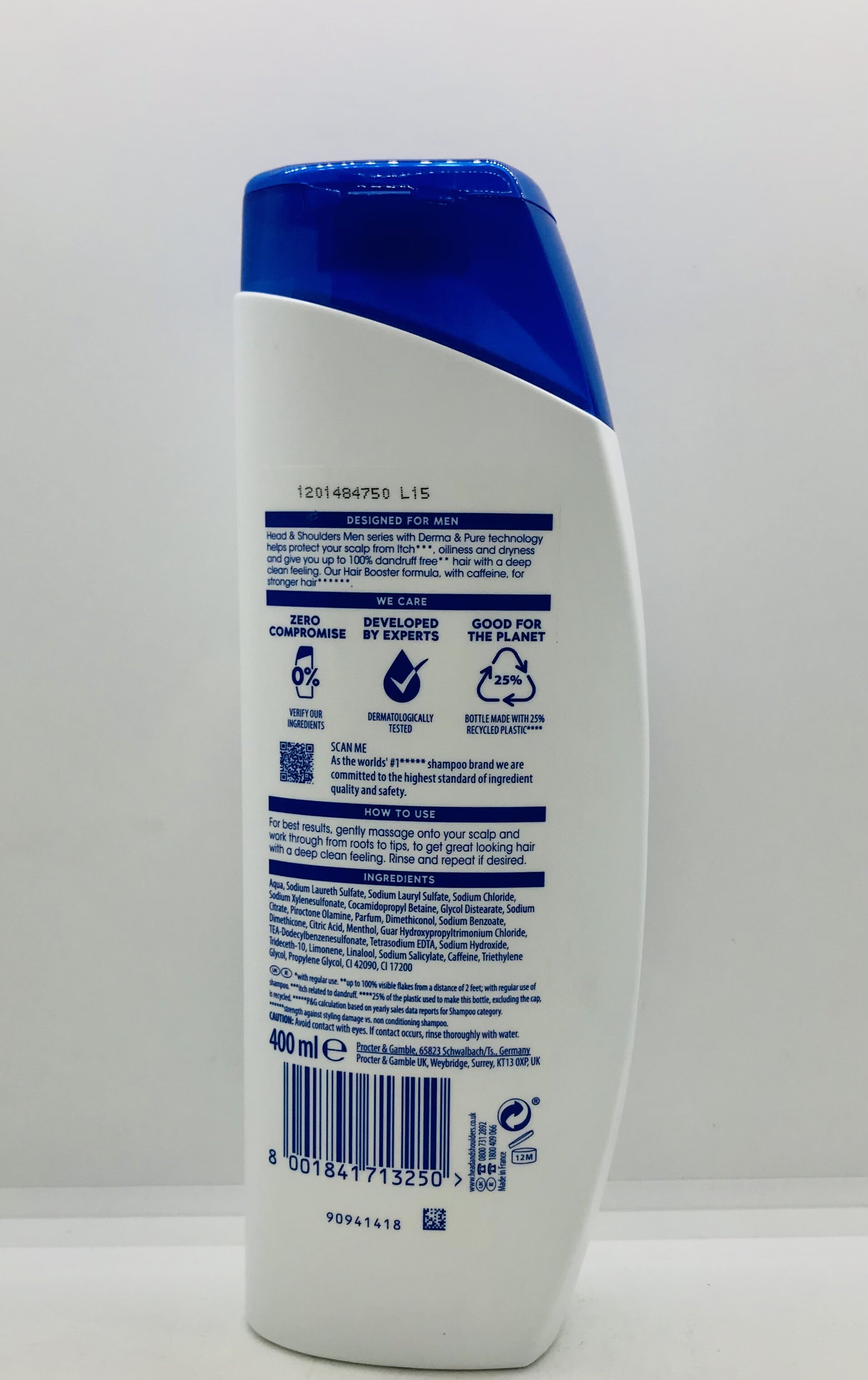 Aqua, Sodium Laureth Sulfate, Sodium Lauryl Sulfate, Sodium Chloride, Sodium Xylenesulfonate, Cocamidopropyl Betaine, Glycol Distearate, Sodium Citrate, Piroctone Olamine, Parfum, Dimethiconol, Sodium Benzoate, Dimethicone, Citric Acid, Menthol, Guar Hydroxypropyltrimonium Chloride, TEA-Dodecyl benzenesulfonate, Tetrasodium EDTA, Sodium Hydroxide, Trideceth-10, Limonene, Linalool, Sodium Salicylate, Caffeine, Triethylene Glycol, Propylene Glycol, CI 42090, CI 17200.