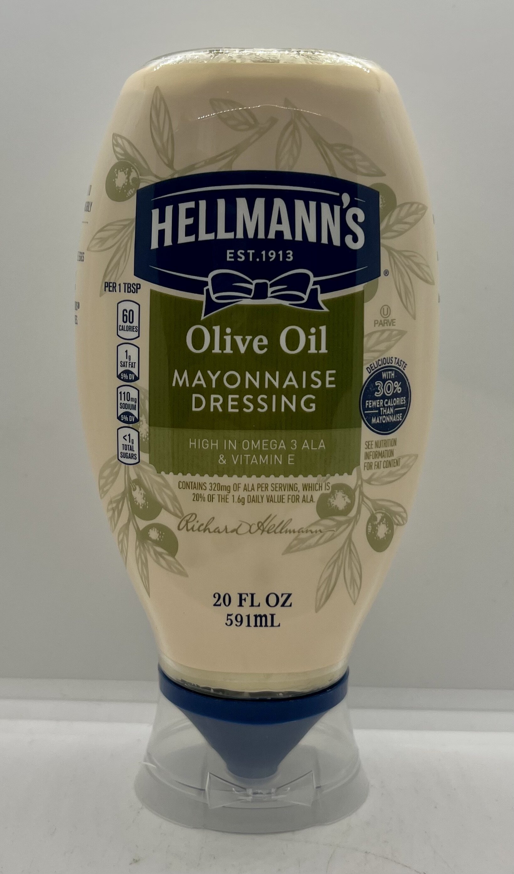 Water, olive oil, canola oil, soybean oil, whole eggs, modified corn starch, sugar, distilled vinegar, egg yolks, salt, lemon juice concentrate, sorbic acid and disodium edta, vitamin E, natural flavor, paprika extract.