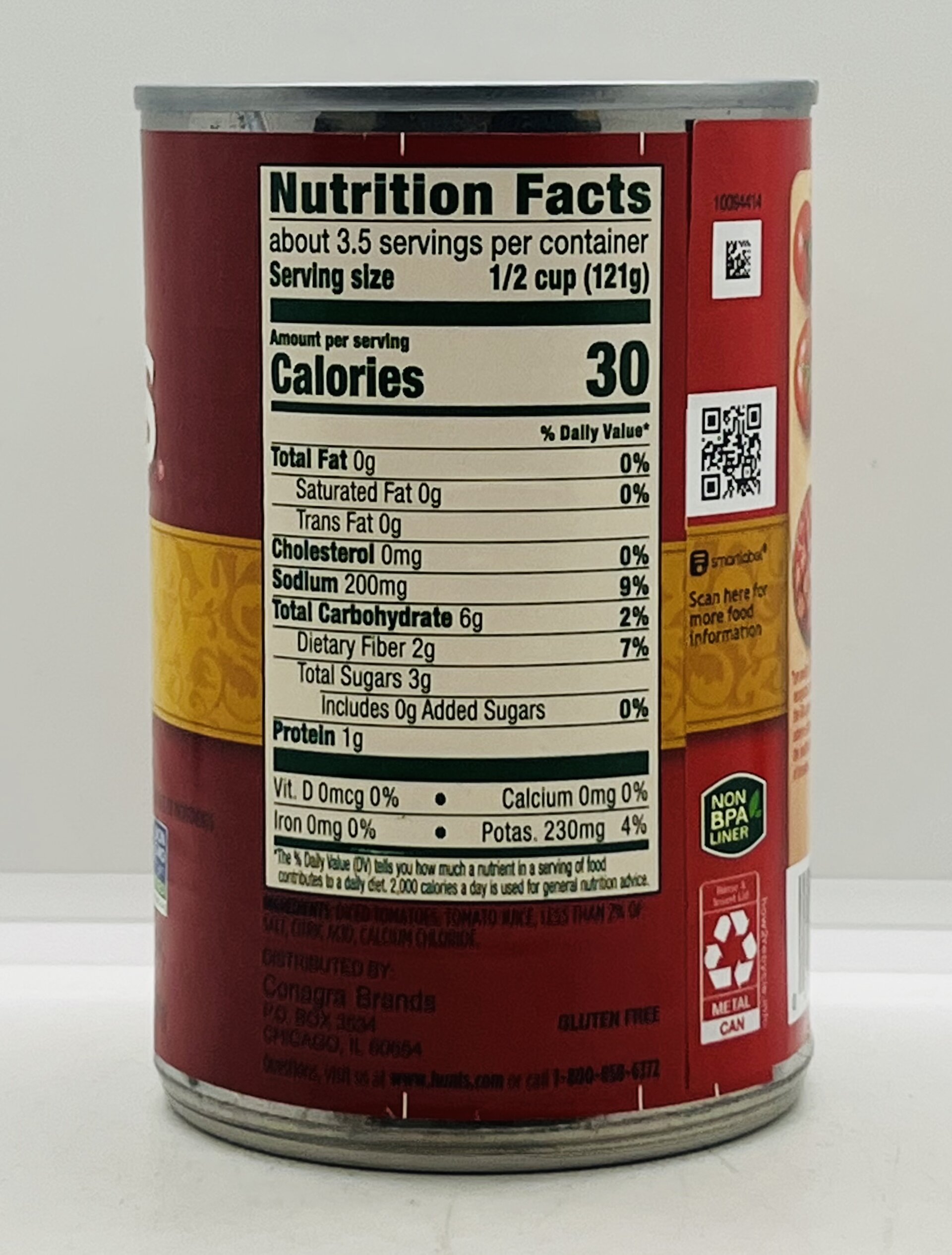Diced tomatoes, tomato juice, less than 2% of: salt, citric acid, calcium chloride.