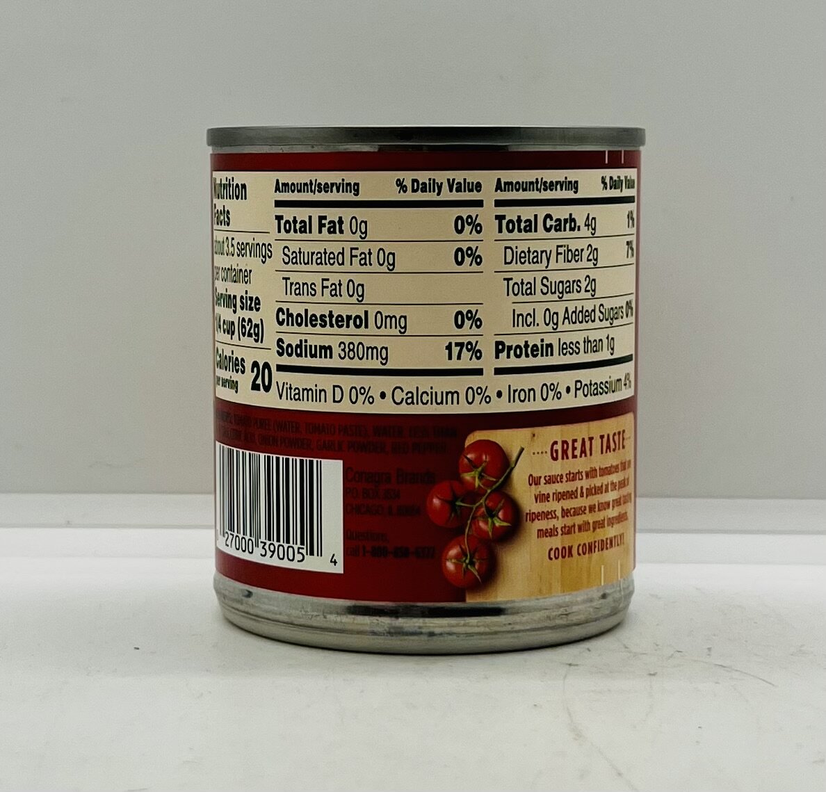 Tomato puree(water, tomato paste), water, less than 2%  of: salt, citric acid, onion powder, garlic powder, red pepper.