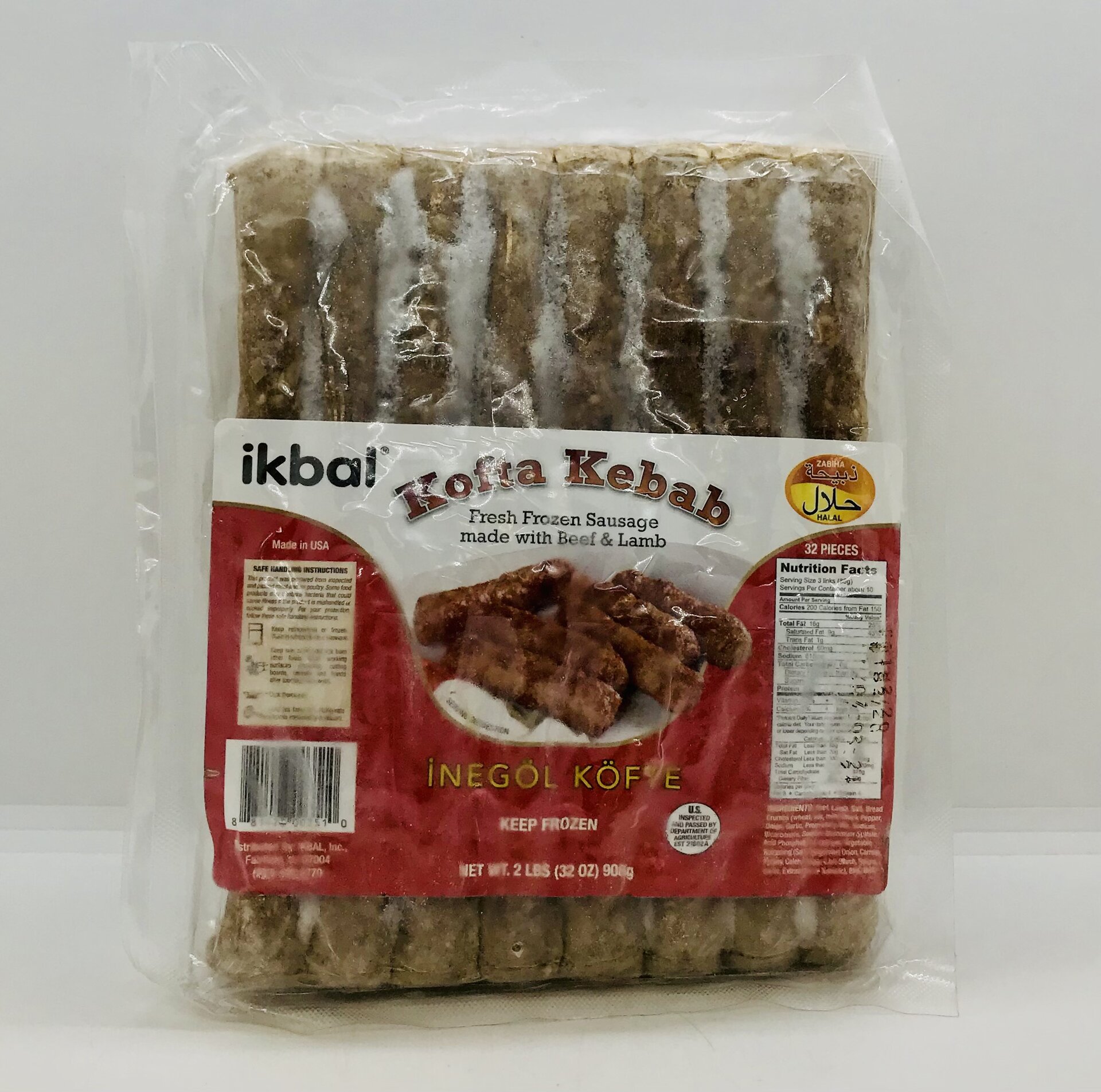 Ikbal Kofta Kebab Fresh Frozen Sausage 908g.