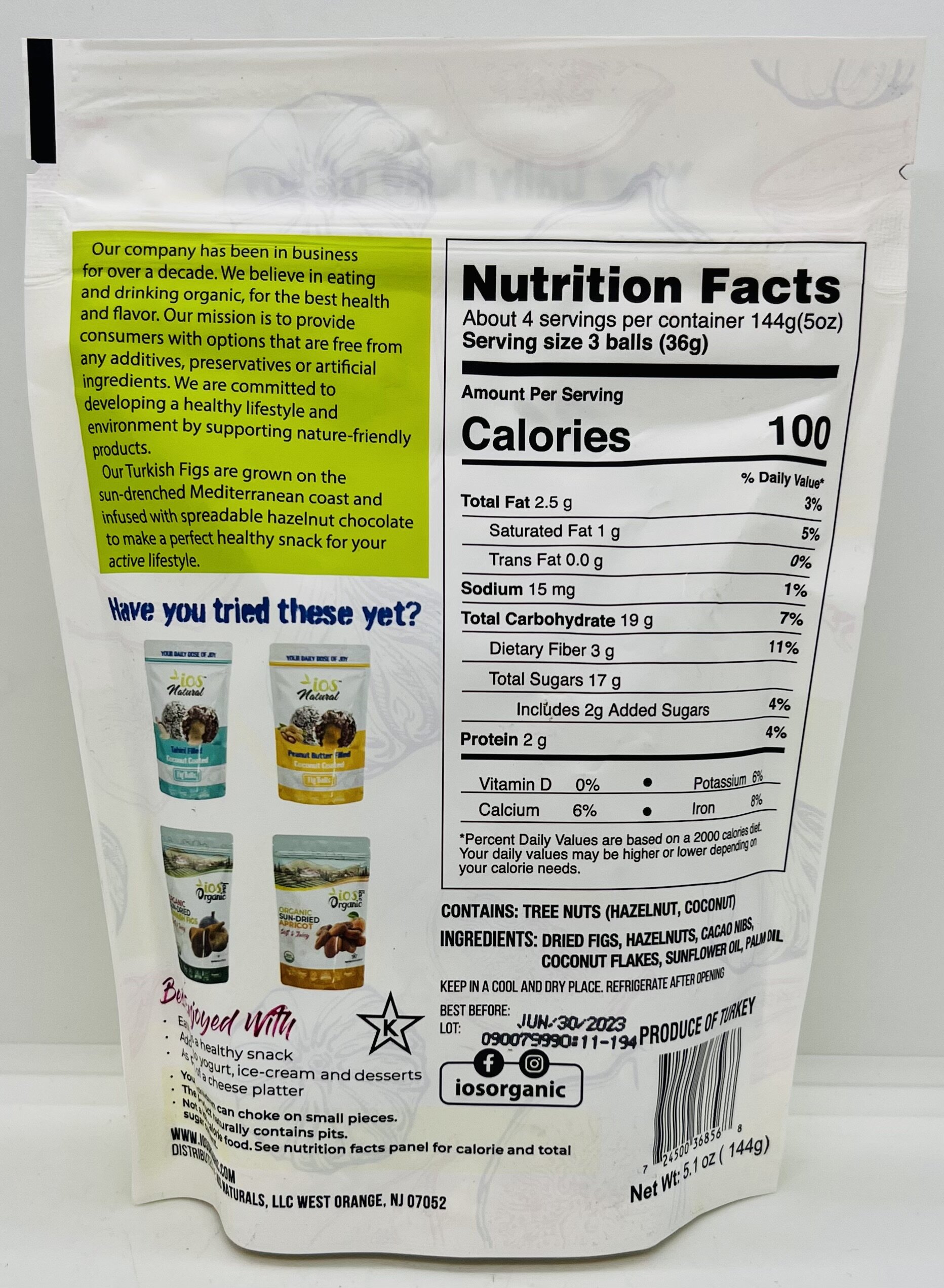 Dried figs, hazelnuts, cacao nibs, coconut flakes, sunflower oil, palm oil.