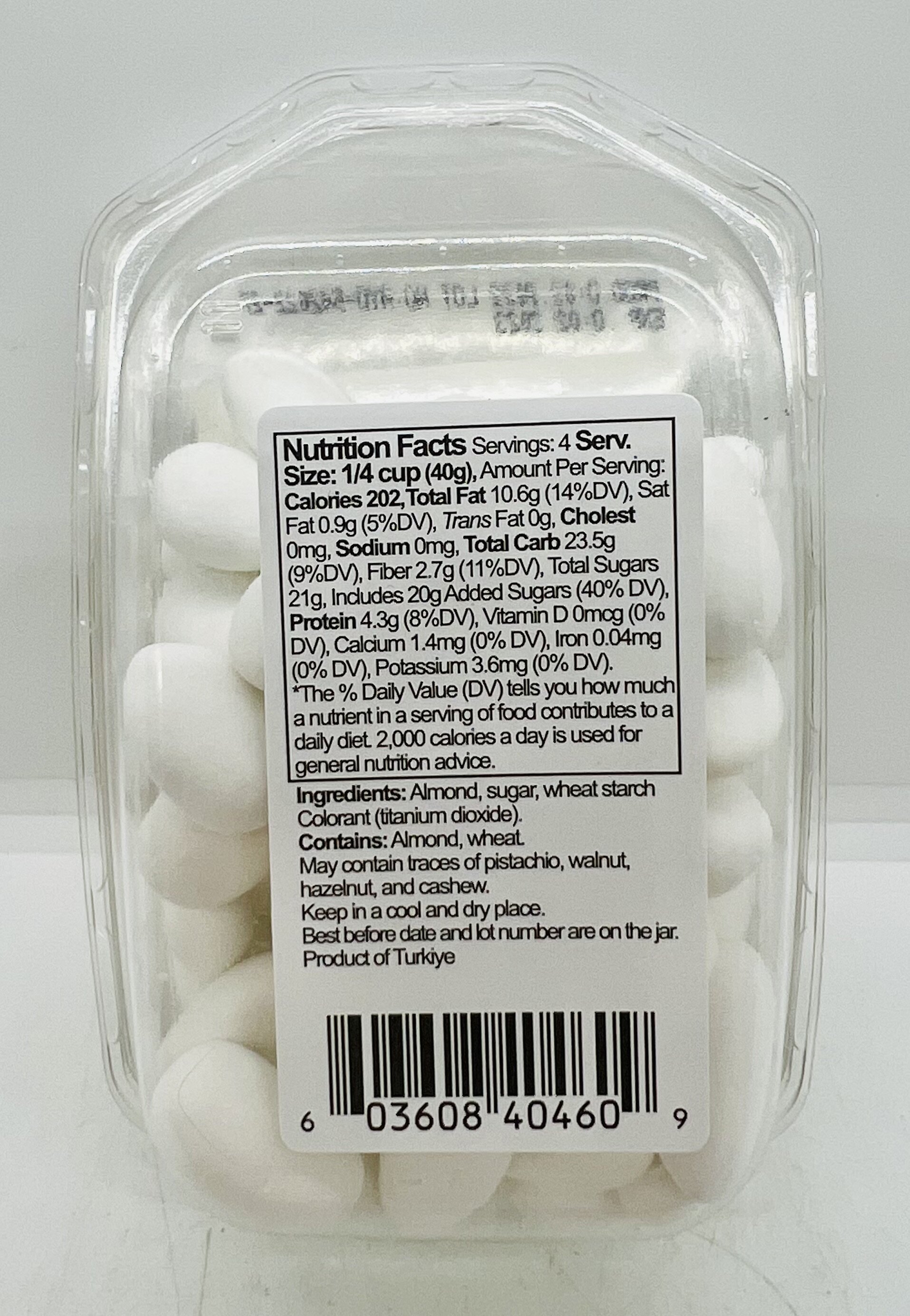 Almond, sugar, wheat starch colorant (titanium dioxide).