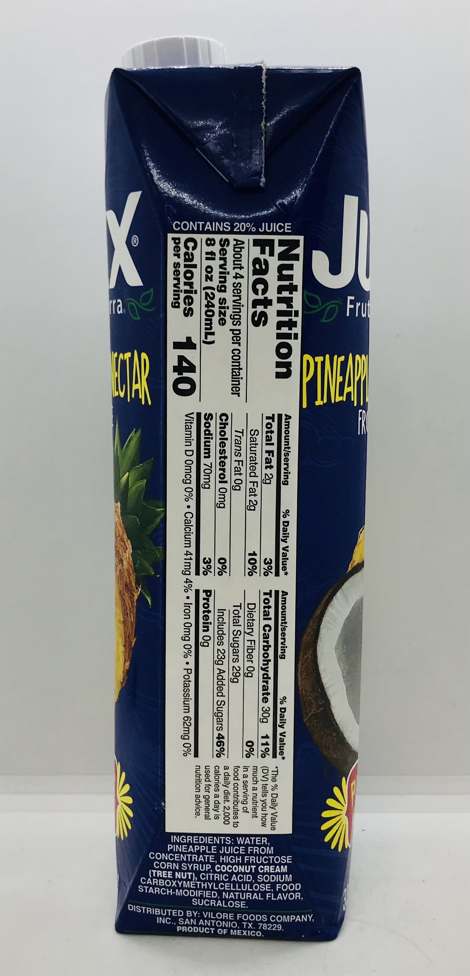 Water, pineapple from concentrate, high fructose corn syrup, coconut cream, citric acid, food starch-modified, natural flavor, sodium carboxymethylcellulose, sucralose.