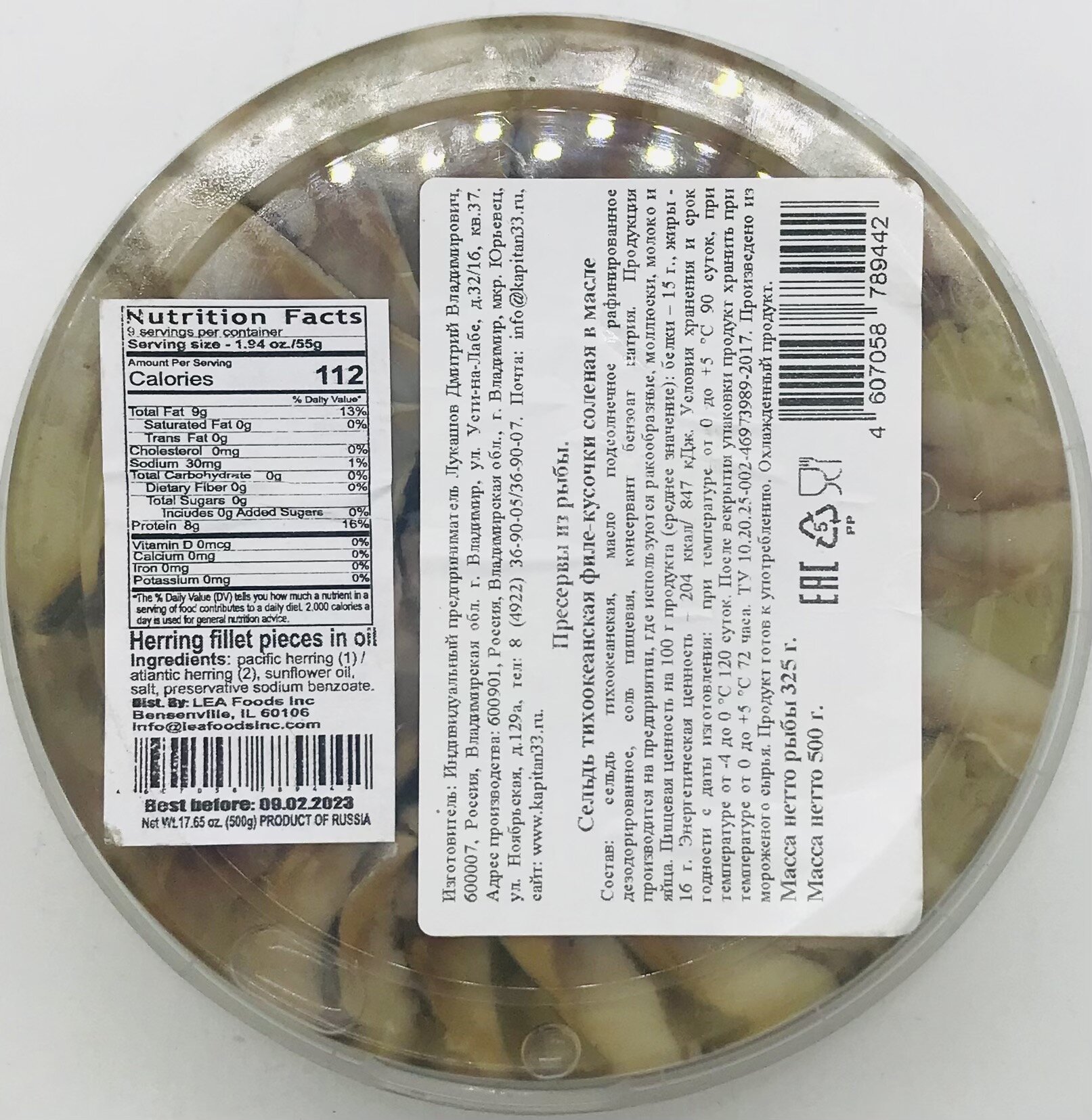 Pacific herring (1) Atlantic herring (2), sunflower oil, salt, preservative sodium benzoate.