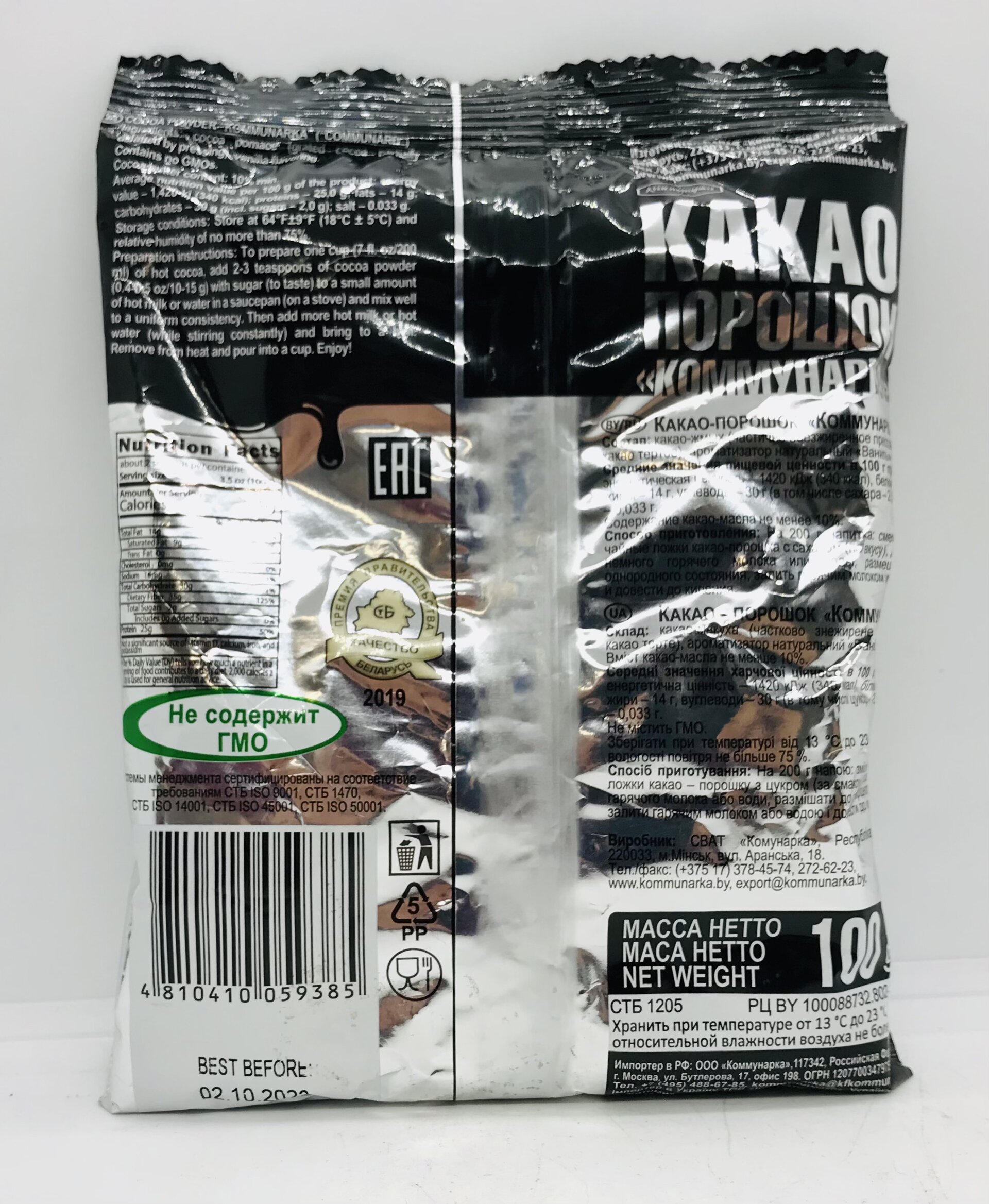 Cocoa pomace (grated cocoa partially defatted by pressing), vanilla flavoring.
