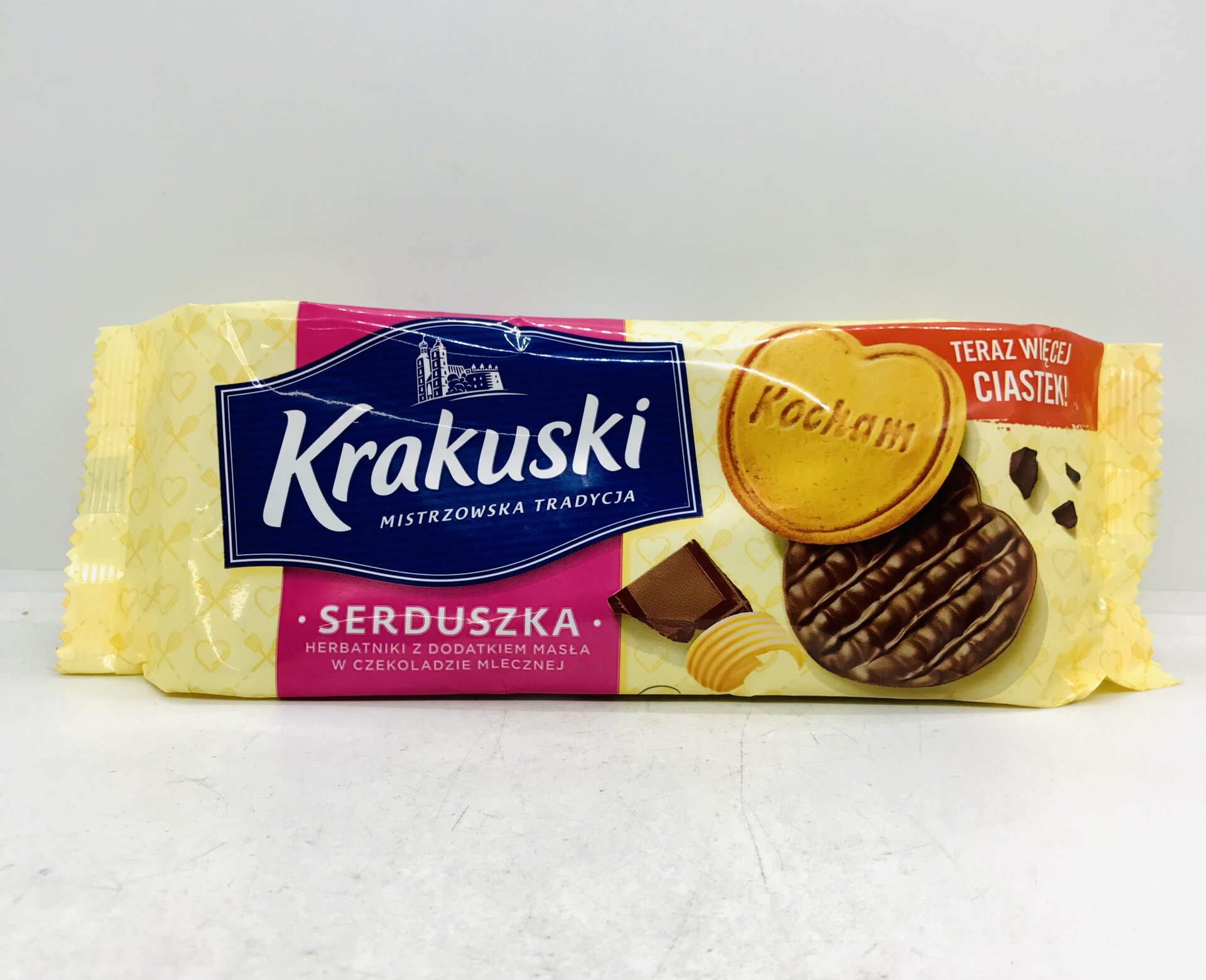 Wheat flour, milk chocolate (sugar, cocoa butter. Cocoa liquor. milk powder, skin milk fat, whey powder (from milk). emulsifier lecithin, flavoring], sugar, pain oil, whey powder (milk) glucose-fructose syrup, butter (1.1%) (from milk), salt, egg powder. raising agents: carbonates and sodium diphosphate, skimmed milk powder, flavor. starch (wheat).